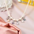 RN00831-Vòng cổ ngọc trai nhỏ mặt đính 6 viên ngọc trai lá bạc các màu