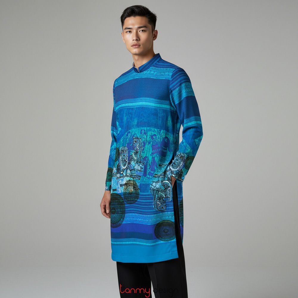 Áo dài nam, cồng chiêng 16 xanh dương