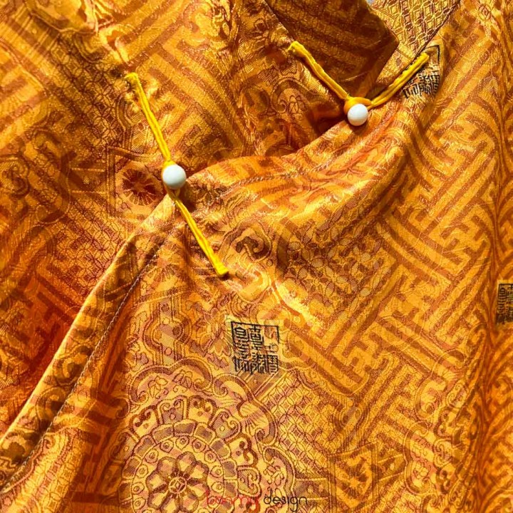 Áo dài nam vải in màu vàng M