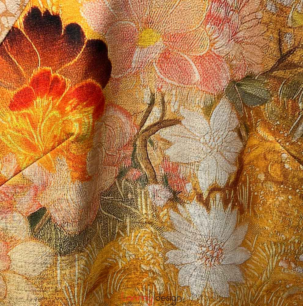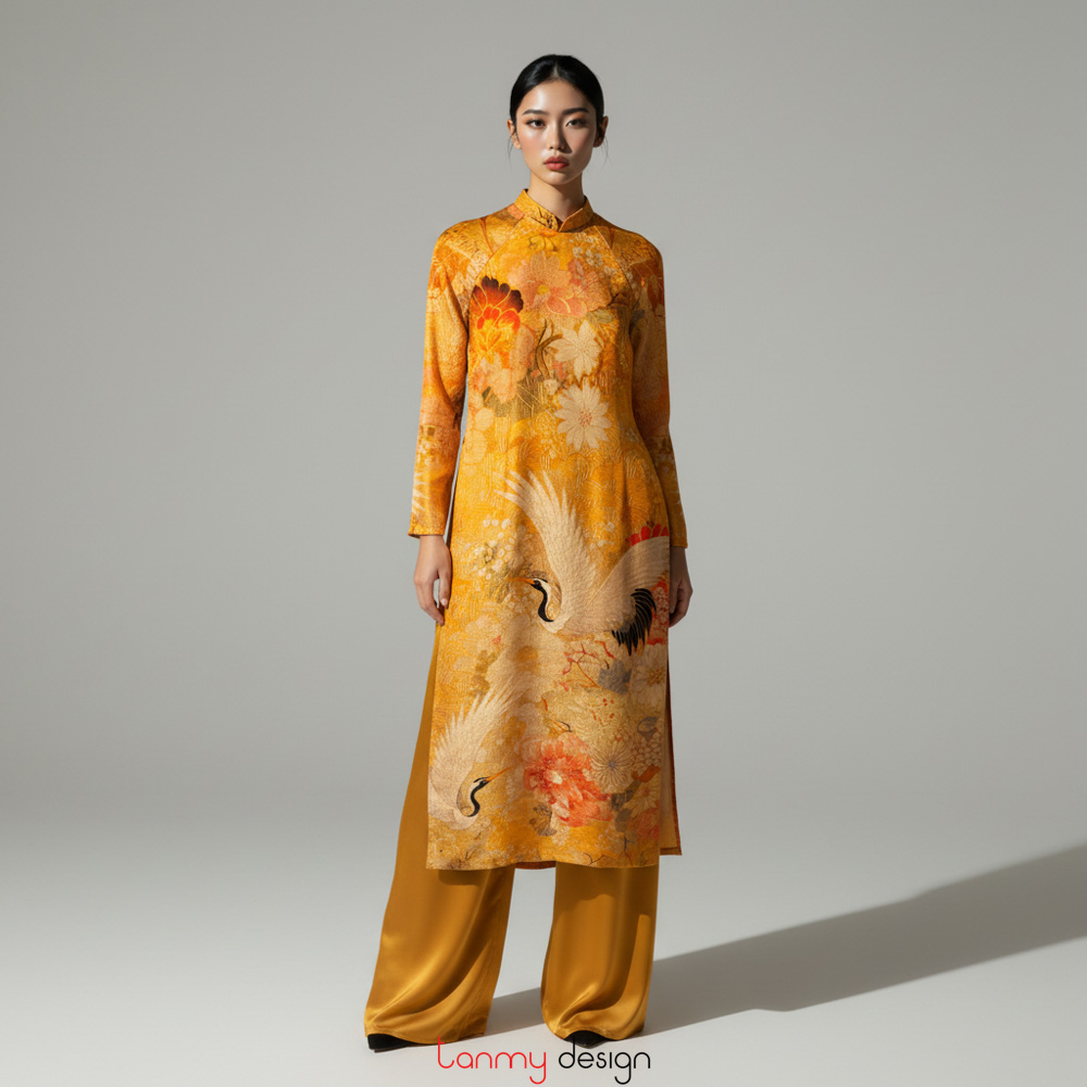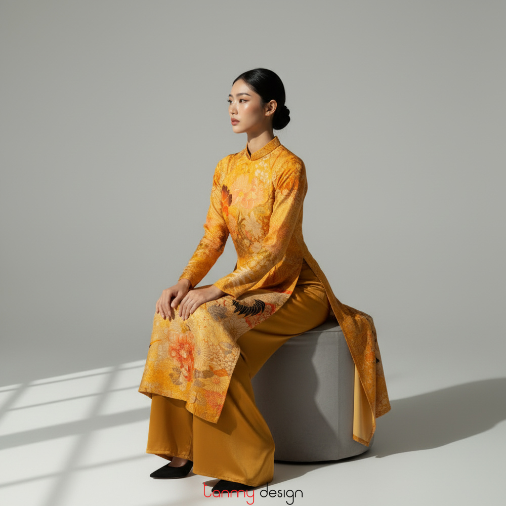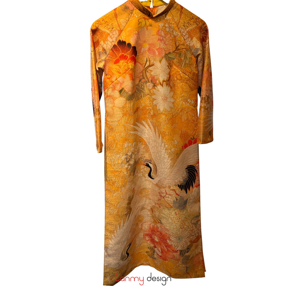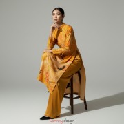 Áo dài nữ xuông, vải gấm dày vàng L