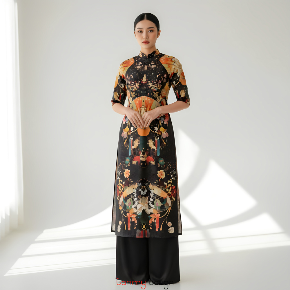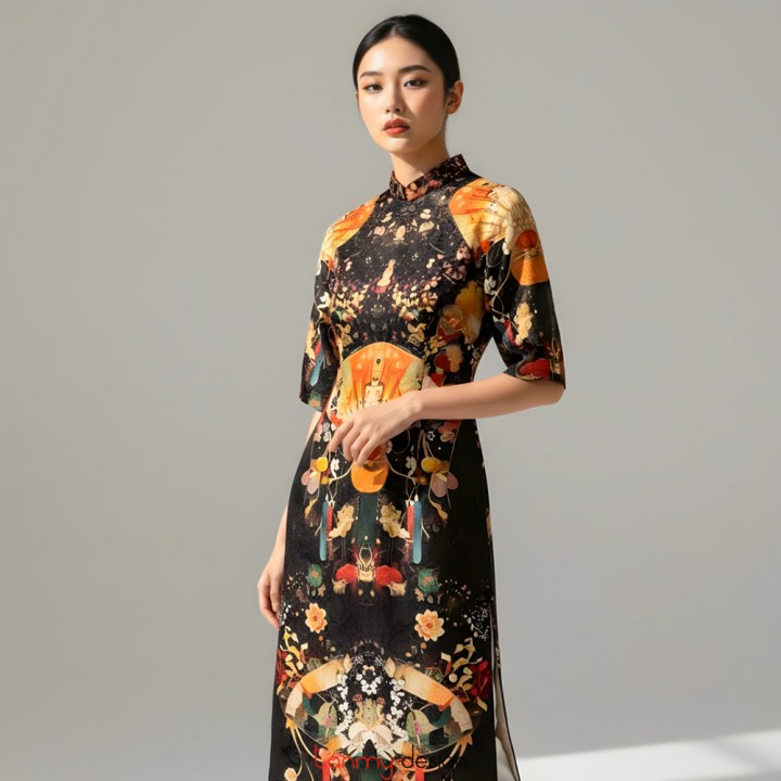 Áo dài nữ xuông, vải gấm in nhiều màu XL