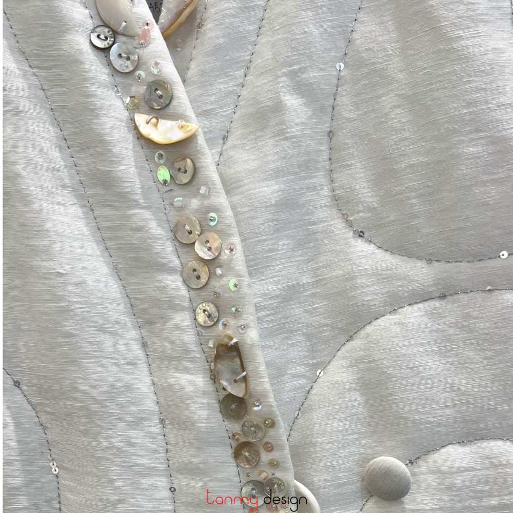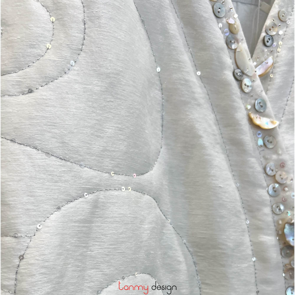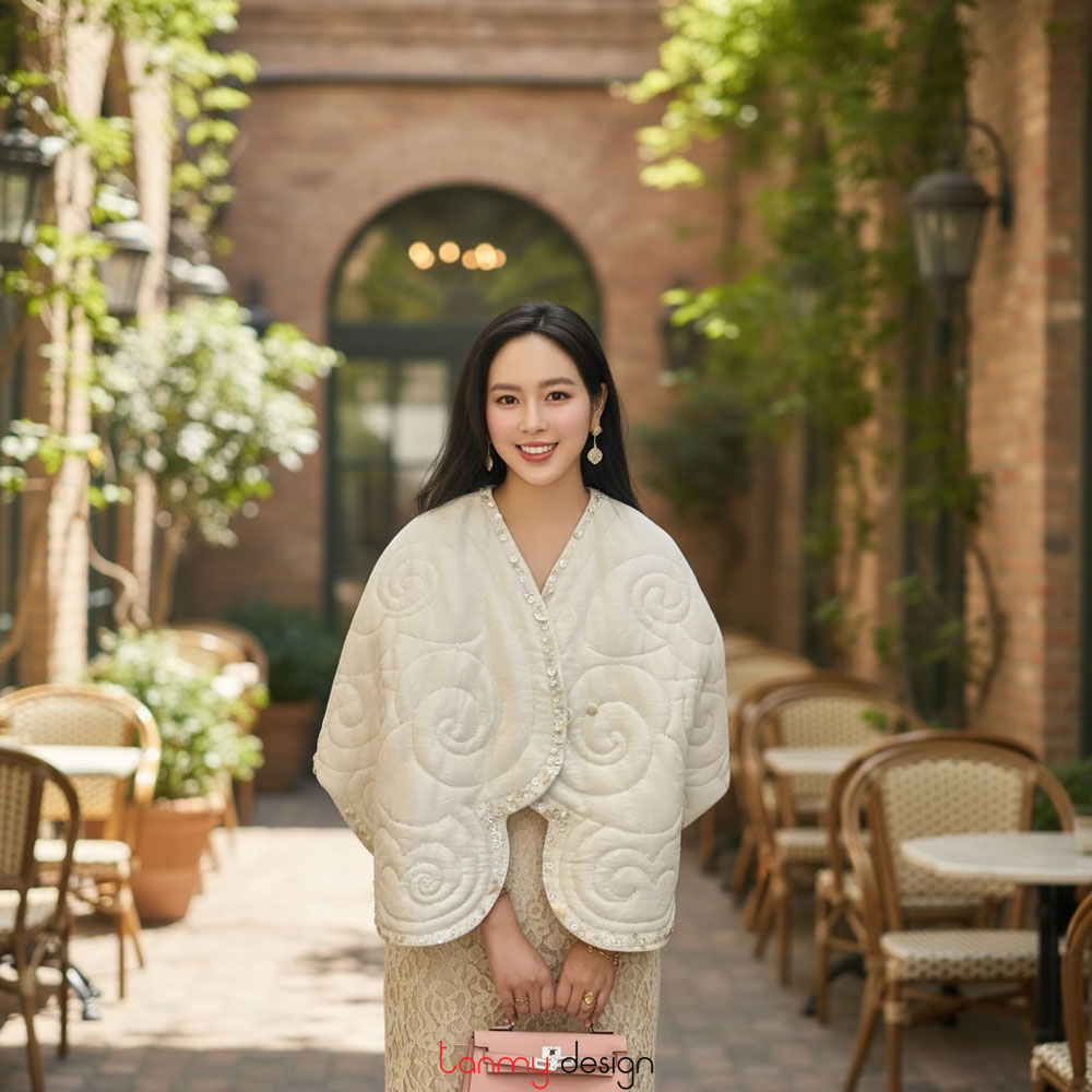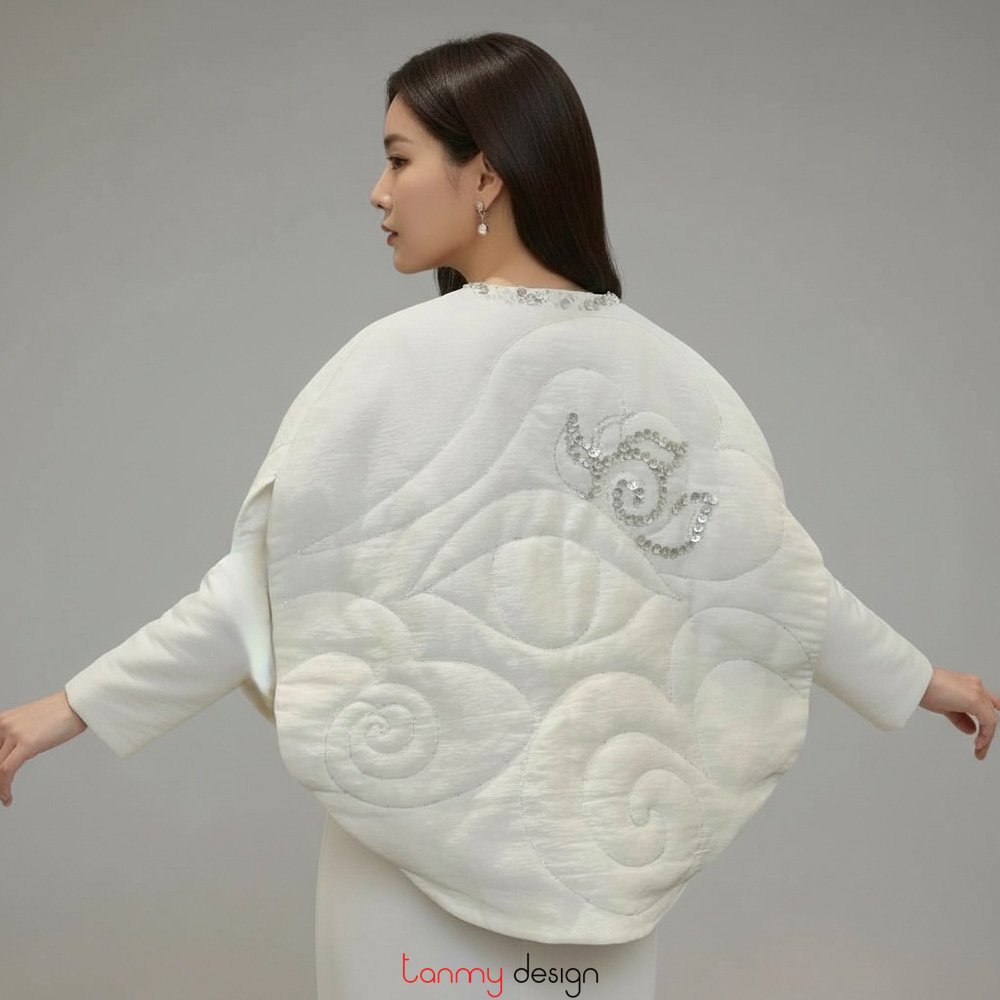 Áo chần bông búp sen lụa trắng