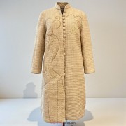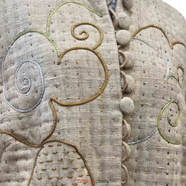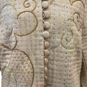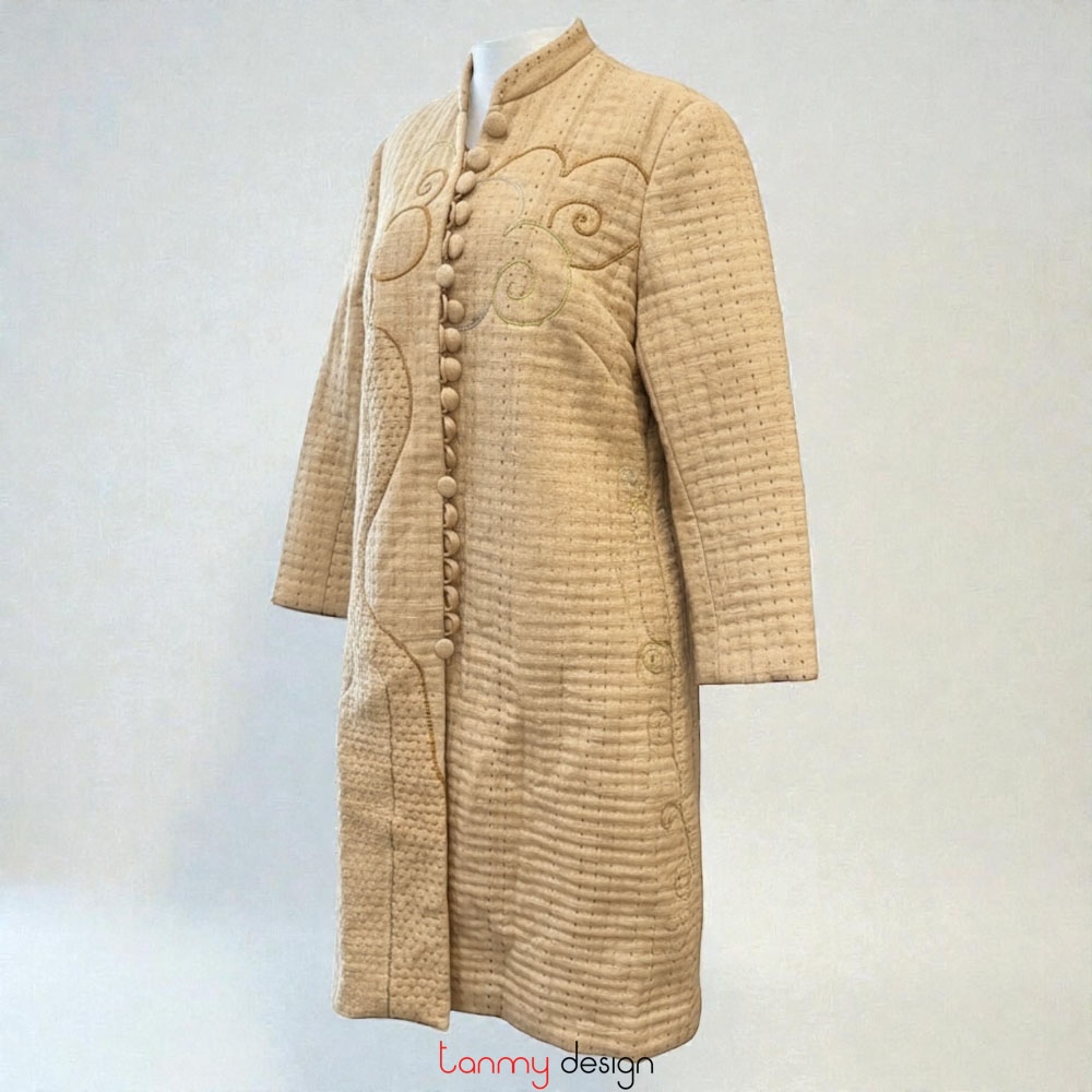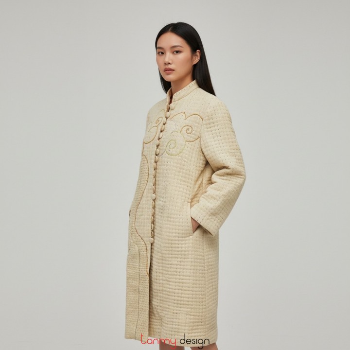Áo chần bông đũi lụa tơ tằm dáng dài thêu vân mây be