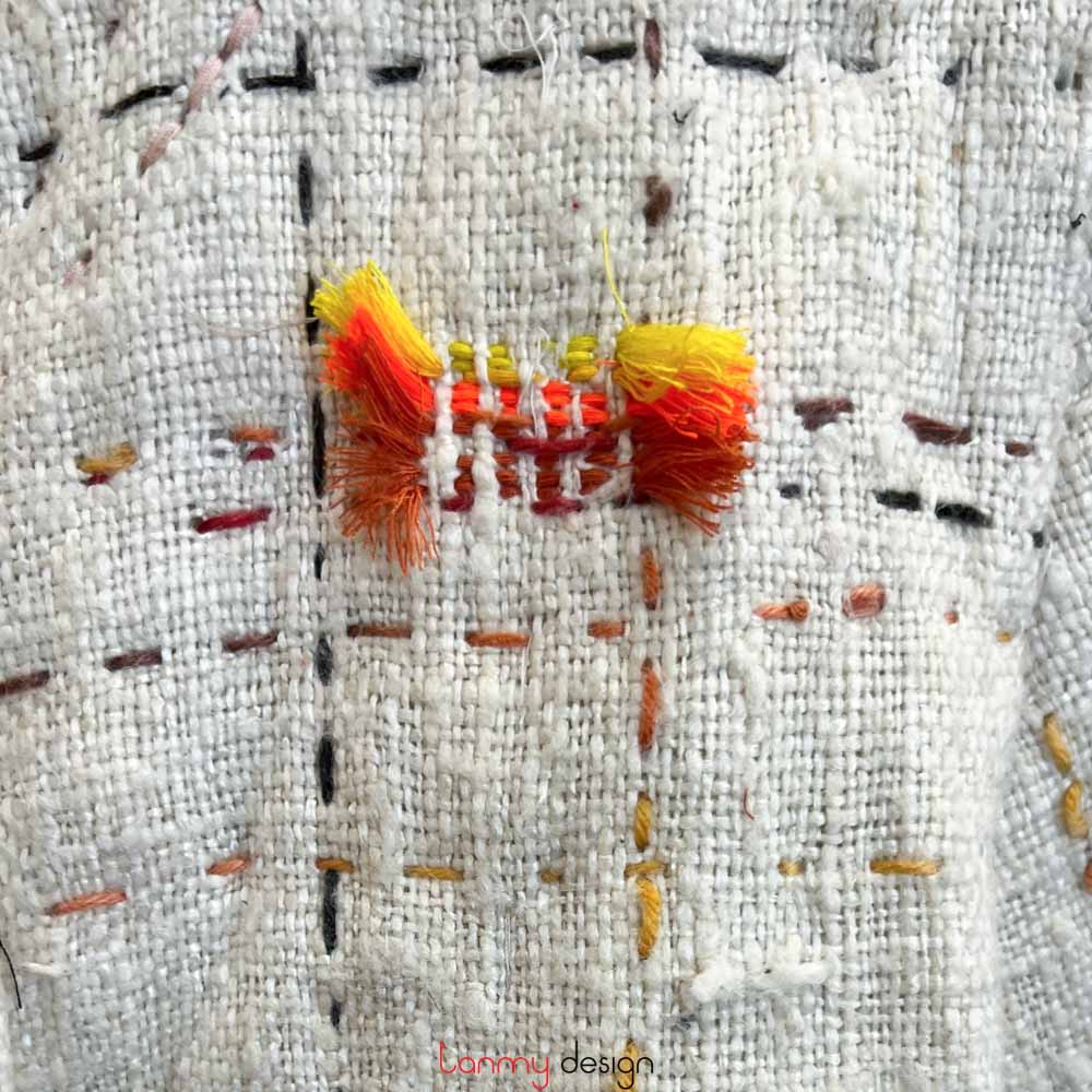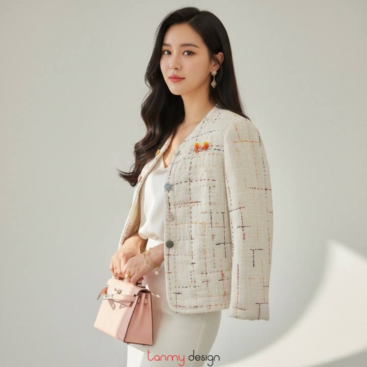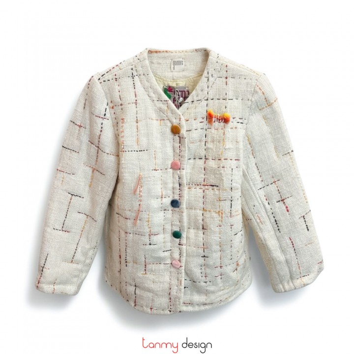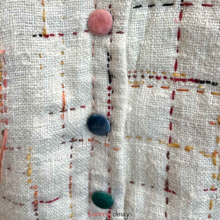 Áo chần bông đũi lụa tơ tằm thêu ô cờ be