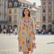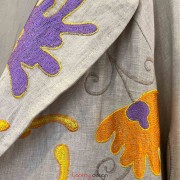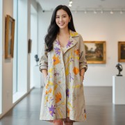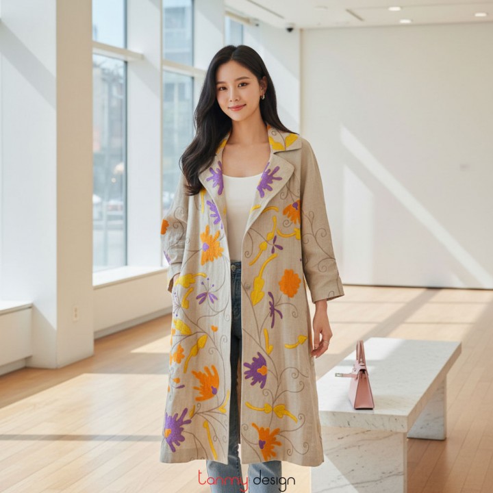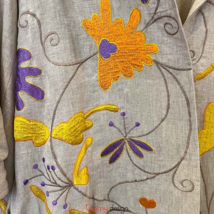 Áo khoác cổ 2 ve hoa phù dung tím cam vàng