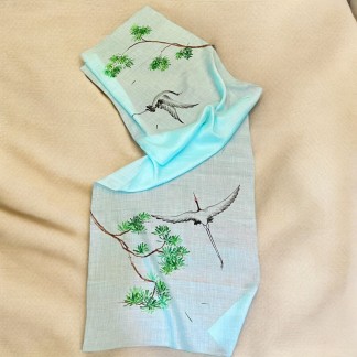 Áo khoác gấm tay bèo họa tiết xanh cốm