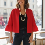 Áo khoác gấm tay bèo taffeta hồng sen