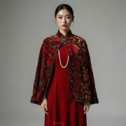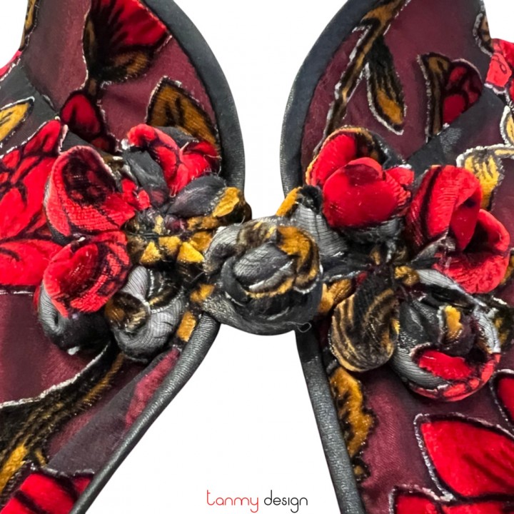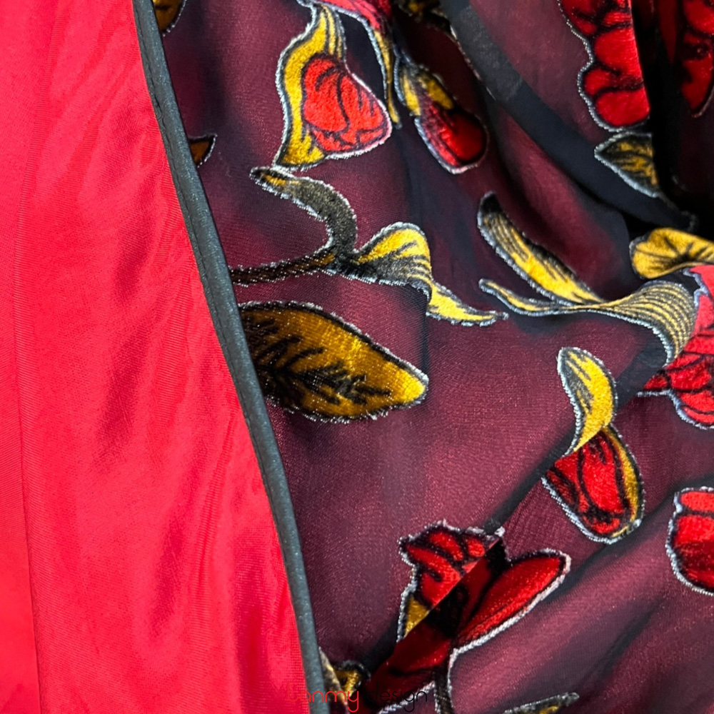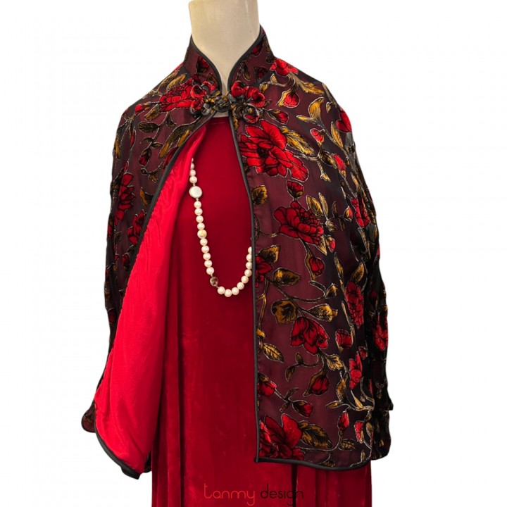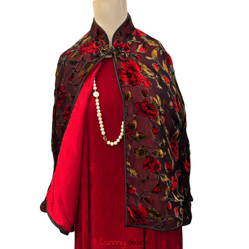 Áo khoác nhung 1 khuy ngắn hoa đỏ