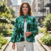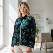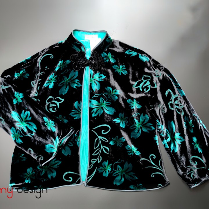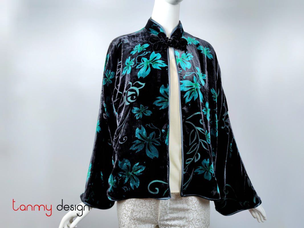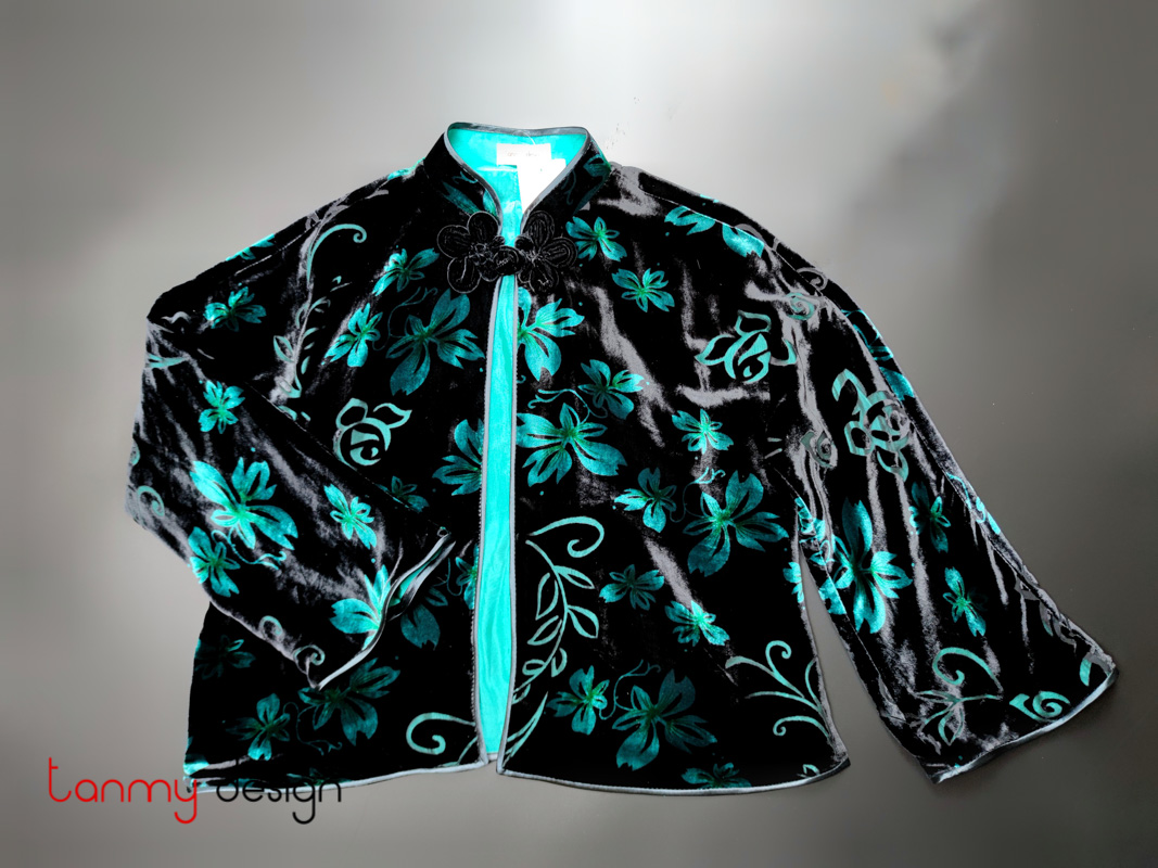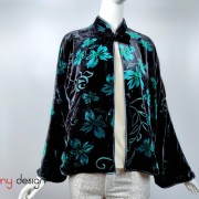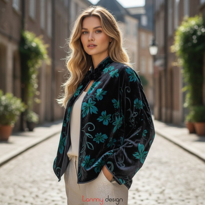 Áo khoác nhung 1 khuy ngắn nhung hoa xanh ( các màu )