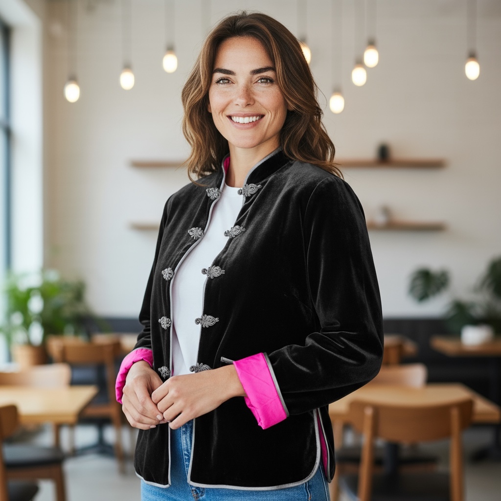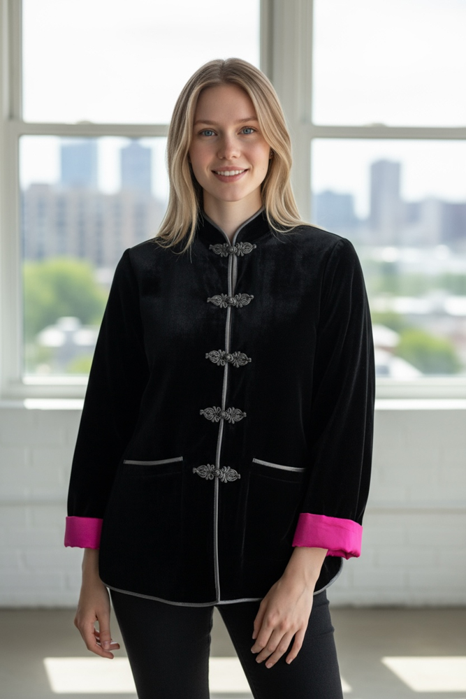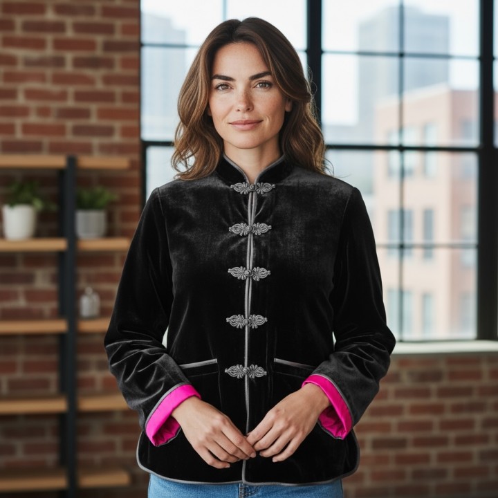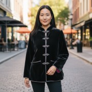 Áo khoác nhung kép đen khuy tết ( lót lụa hồng/ lót lụa đỏ/ lót lụa nâu )