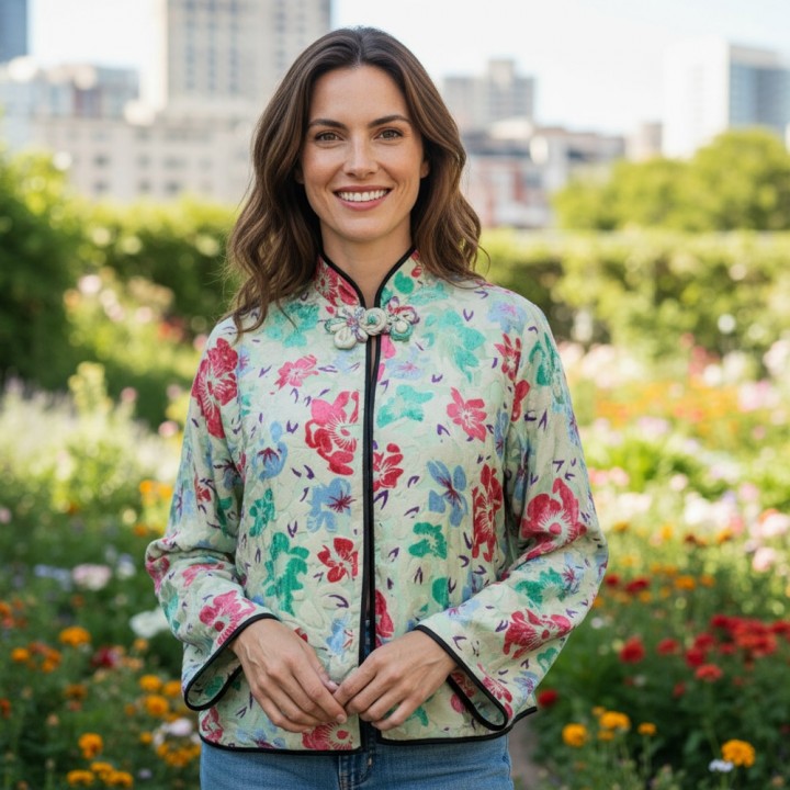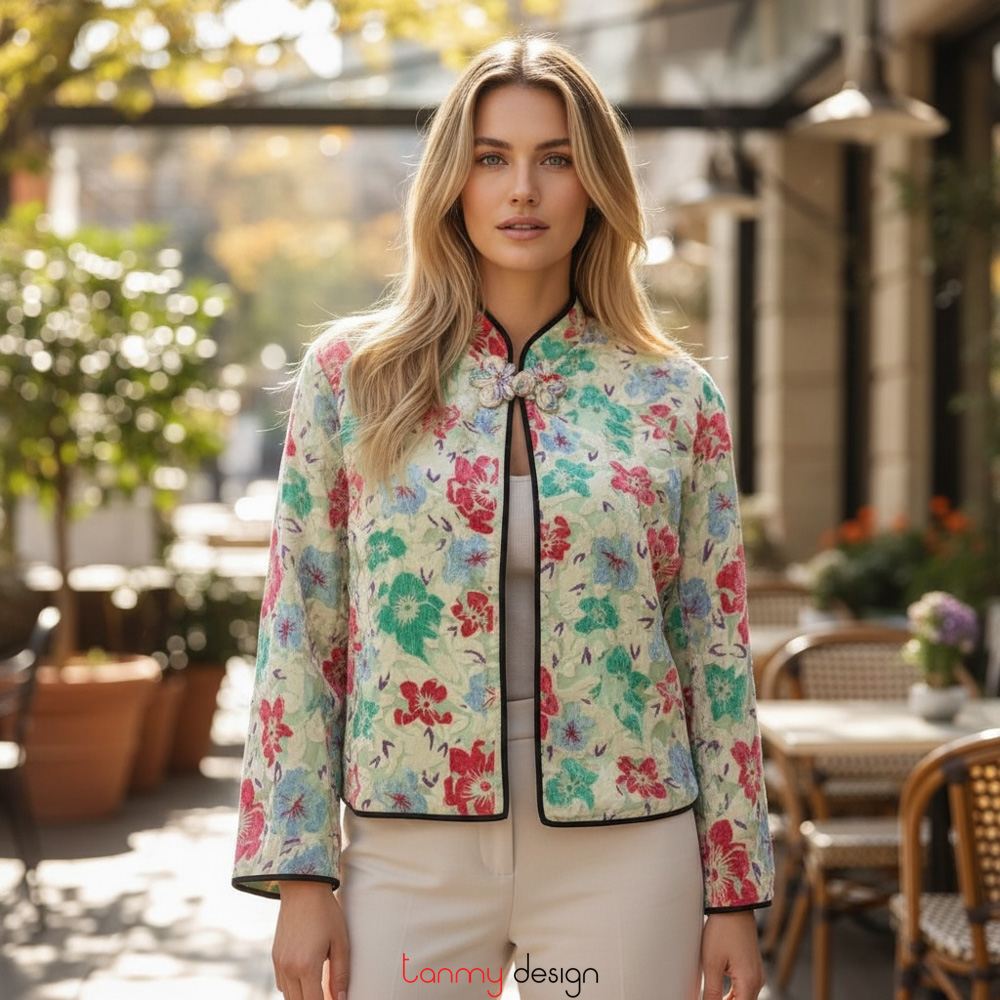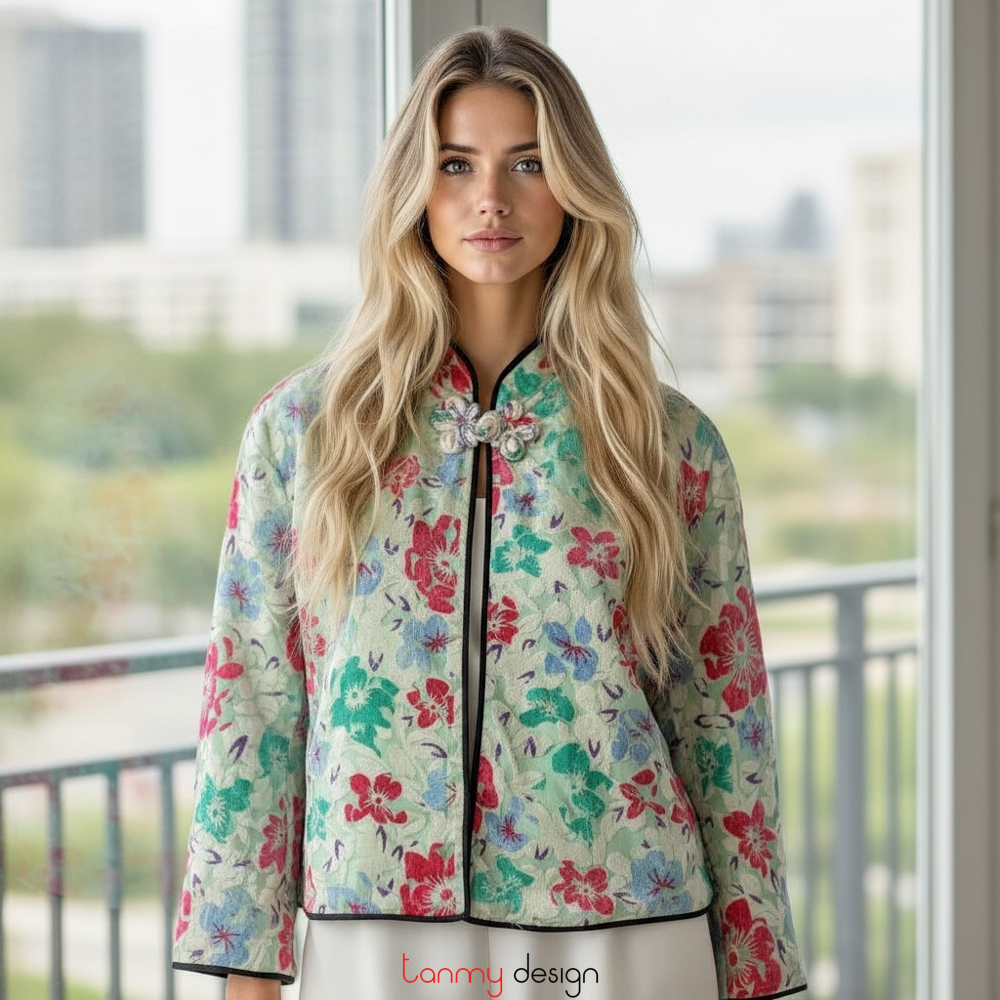Áo khoác nhung xanh hồng 1 khuy