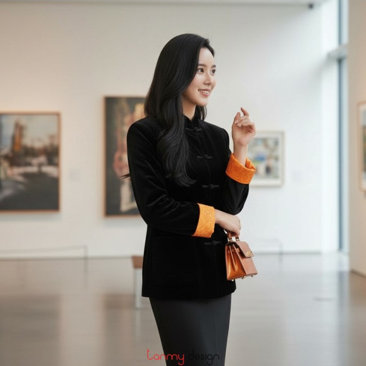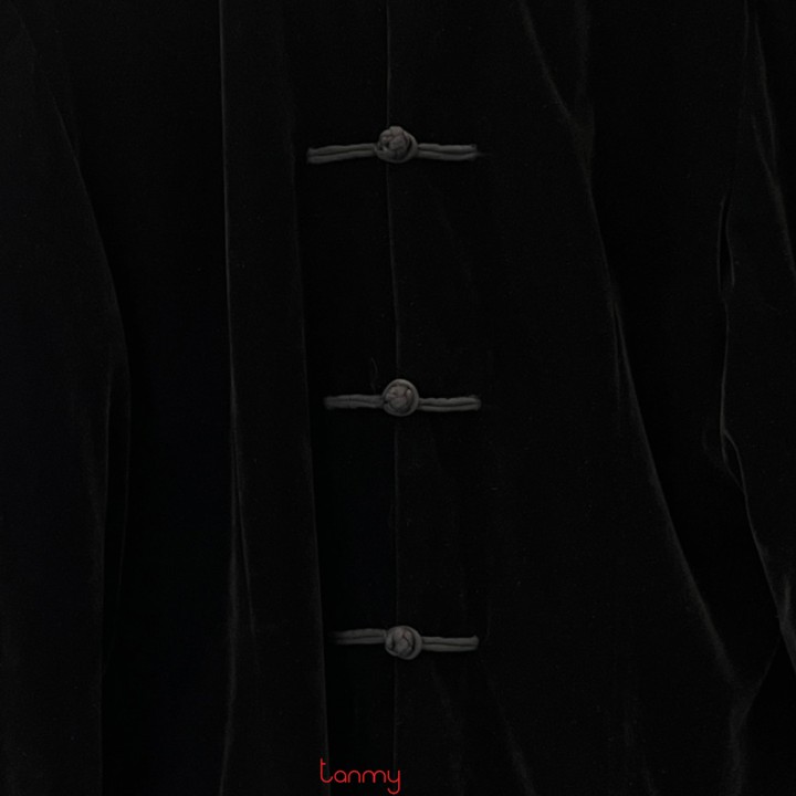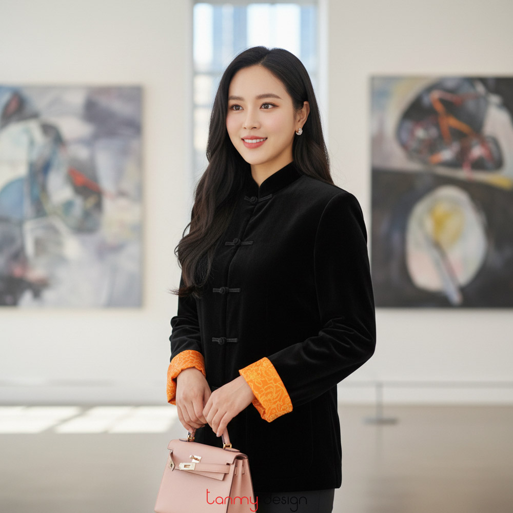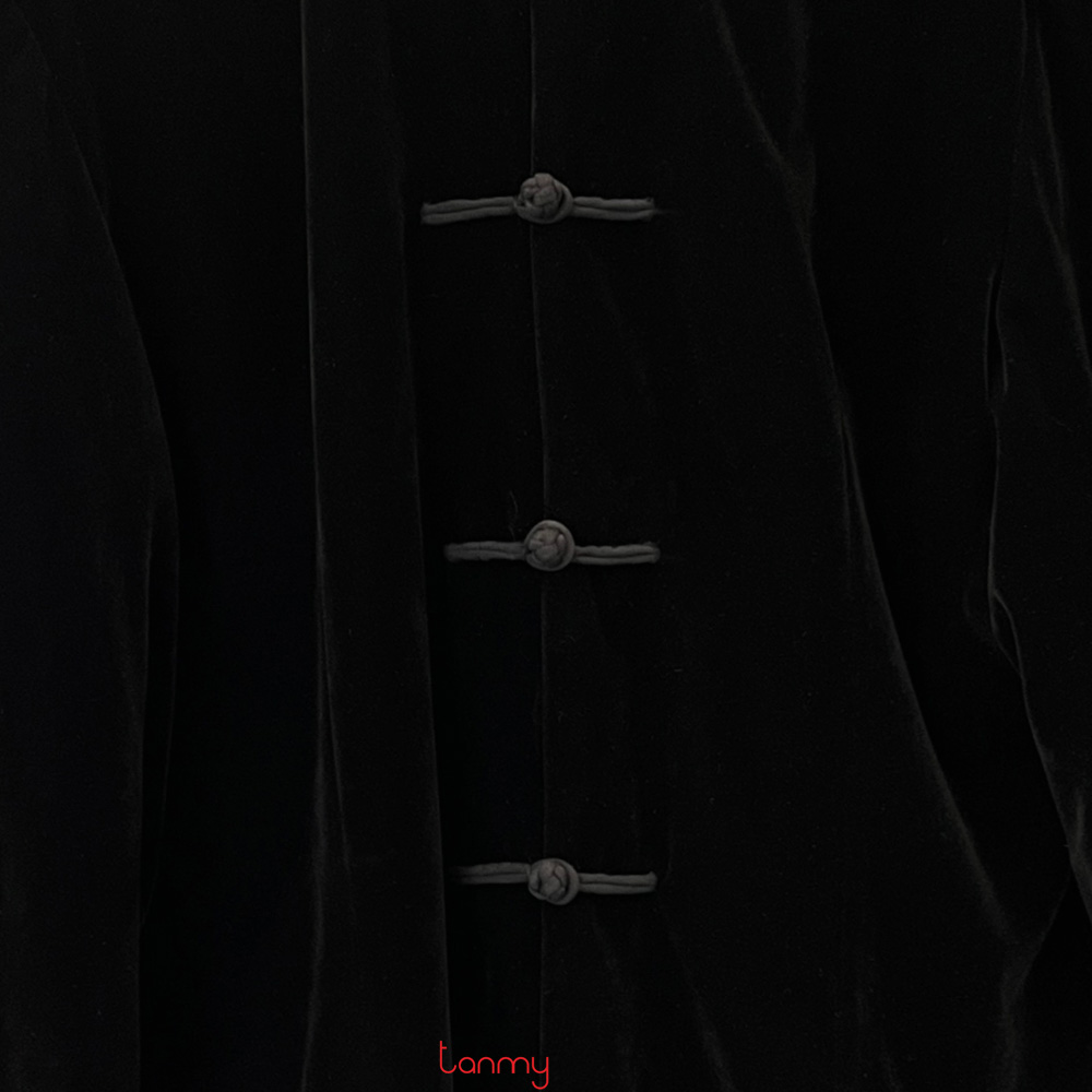 Áo vest nhung bu đanh khuy đũa đen lót cam