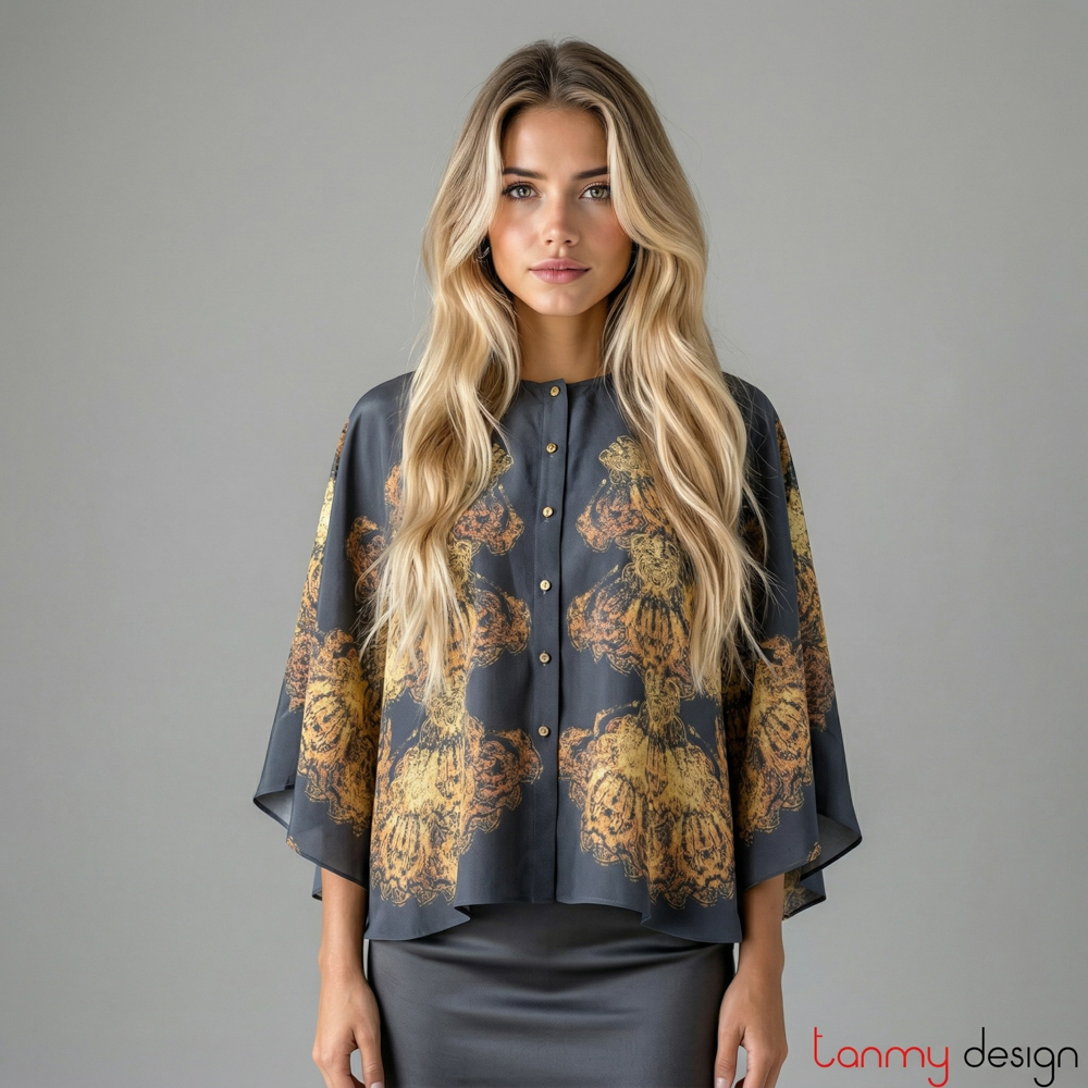 Áo cánh dơi cổ tròn họa tiết dát vàng cam