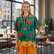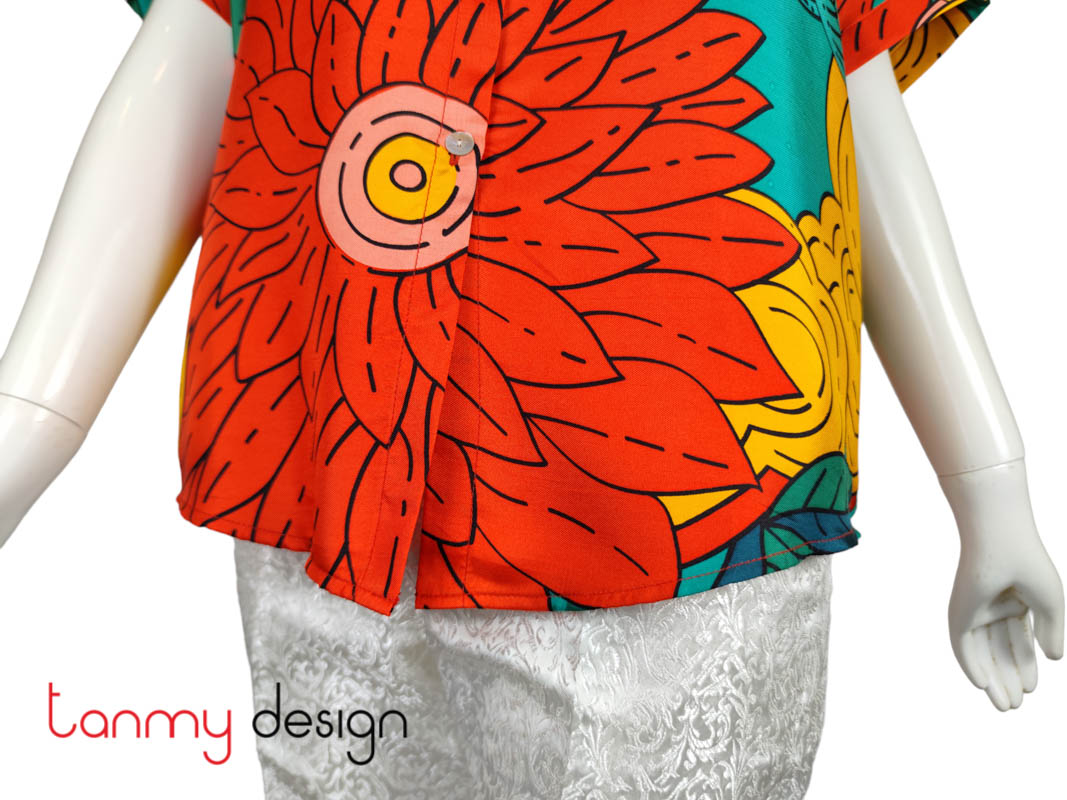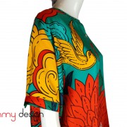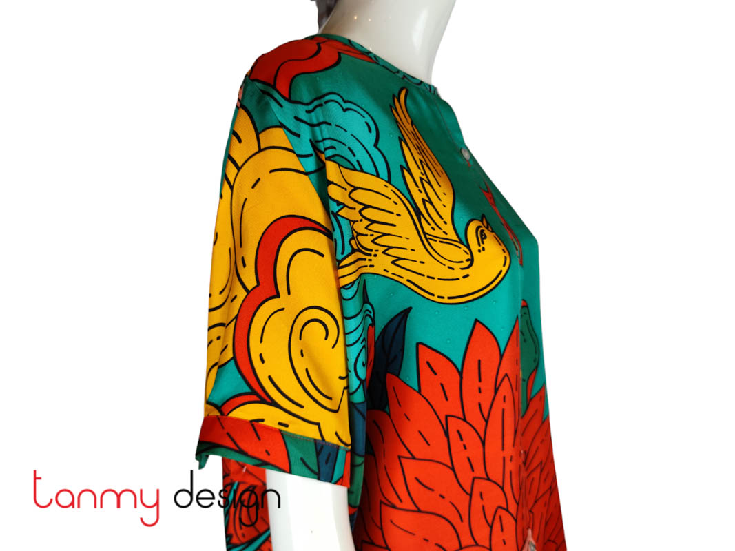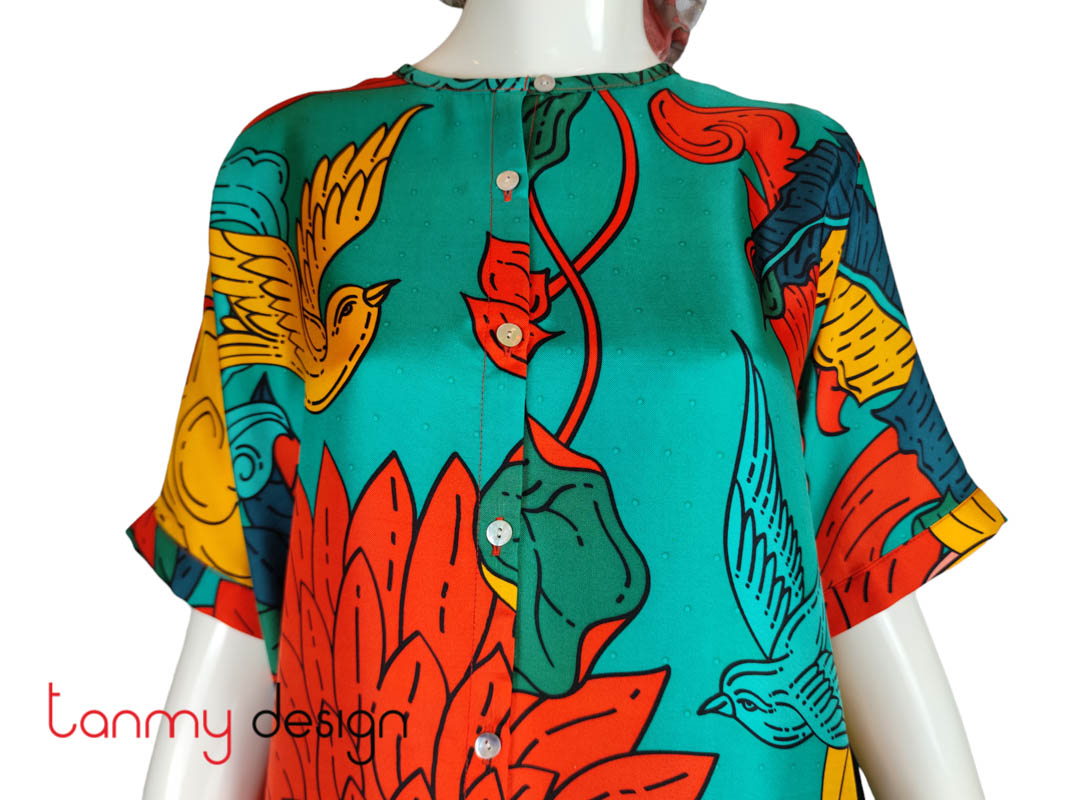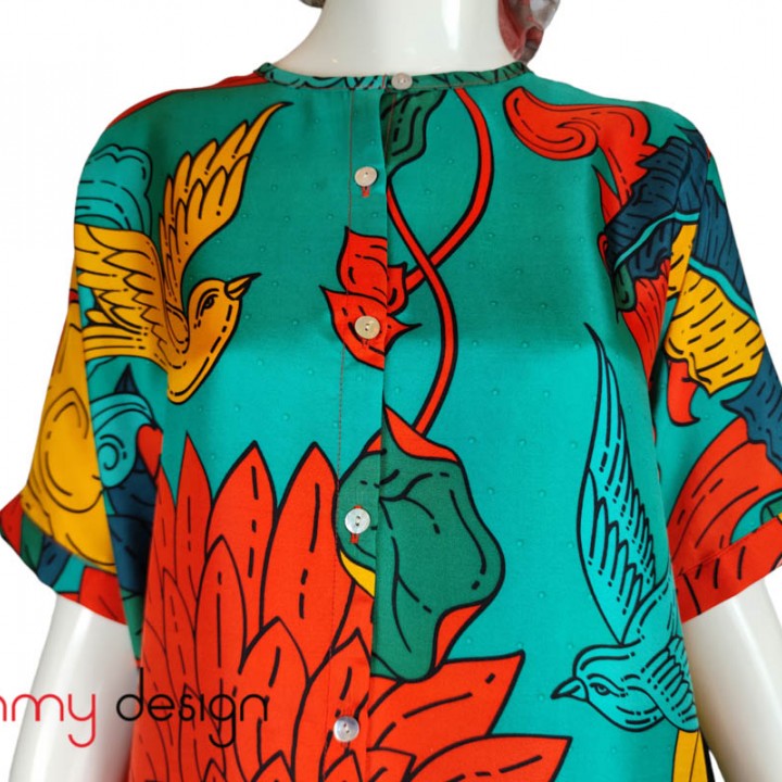 Áo sơ mi lụa cổ tròn Hạnh Phúc