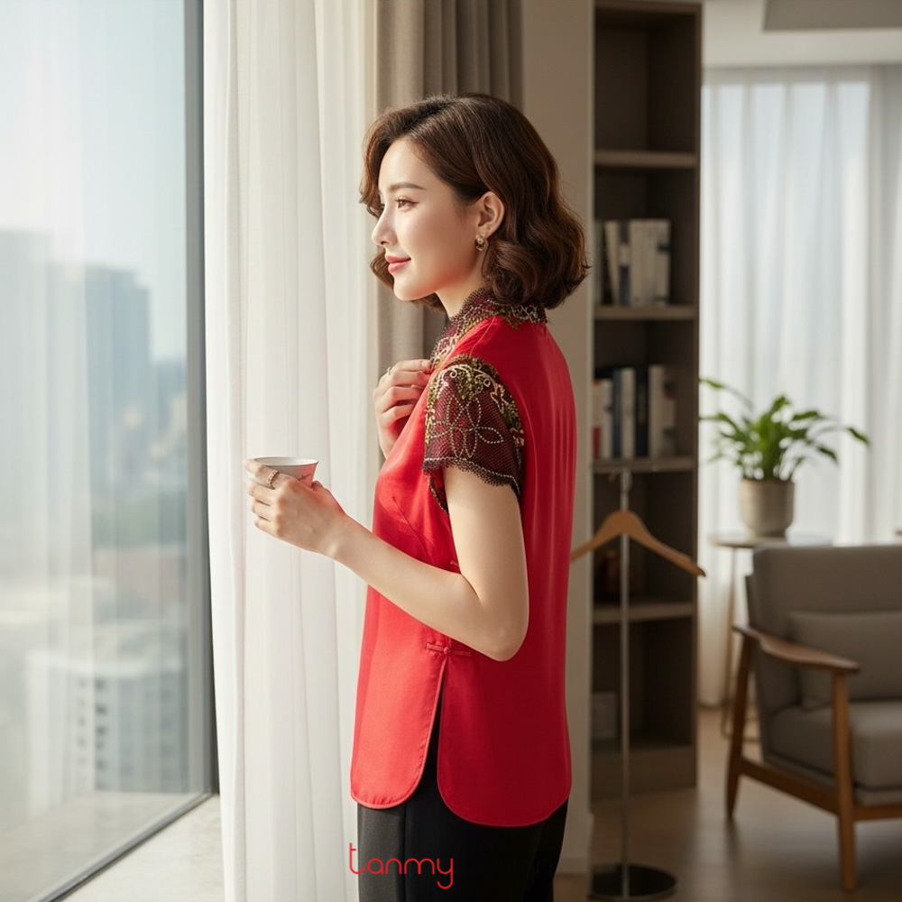 Áo xẩm Lá Lưới Lục Nho Mai Lâm Đỏ