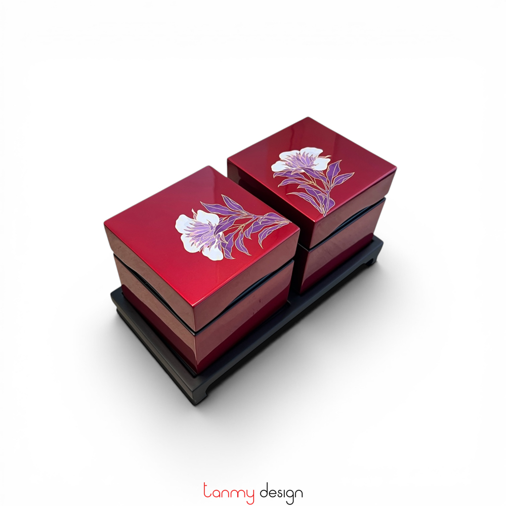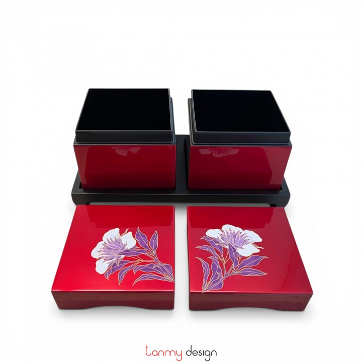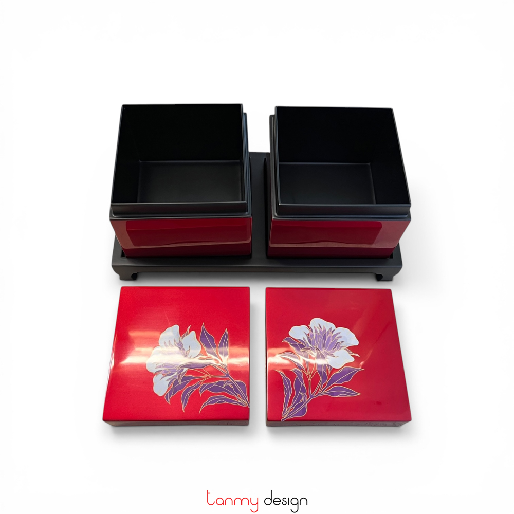 Bộ 2 hộp sơn mài vuông vẽ hoa 12cm kèm đế ( các mẫu )
