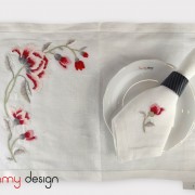 Bộ 01 khăn ăn và lót đĩa thêu hoa trà đỏ-TMD0300145