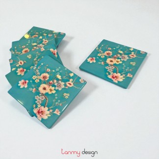 Đầm nhung xanh rêu tay ly úp thêu truyện dân gian
