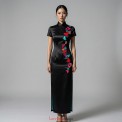 HLT0500702-Short-sleeve qipao dress with a Mandarin collar, embroidered heart on black brocade