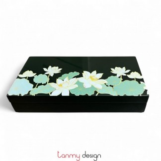 Set of 2 white square boxes hand-painted with lotus included with stand 12*H12cm