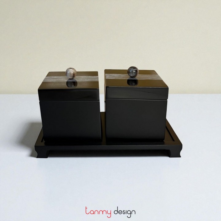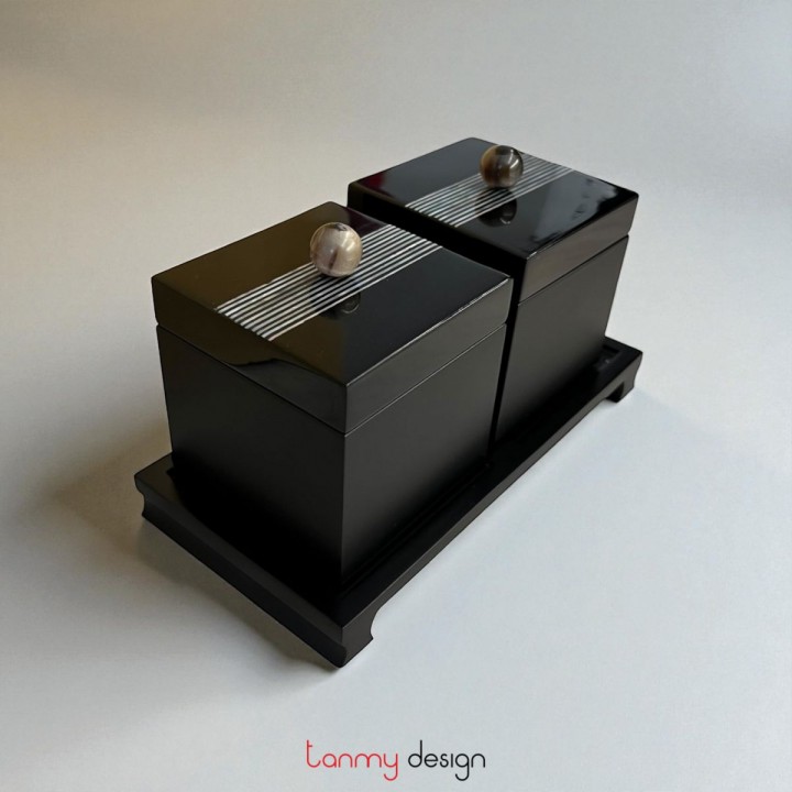 Set of mother-of-pearl square boxes 10cm included with stand ( different designs )