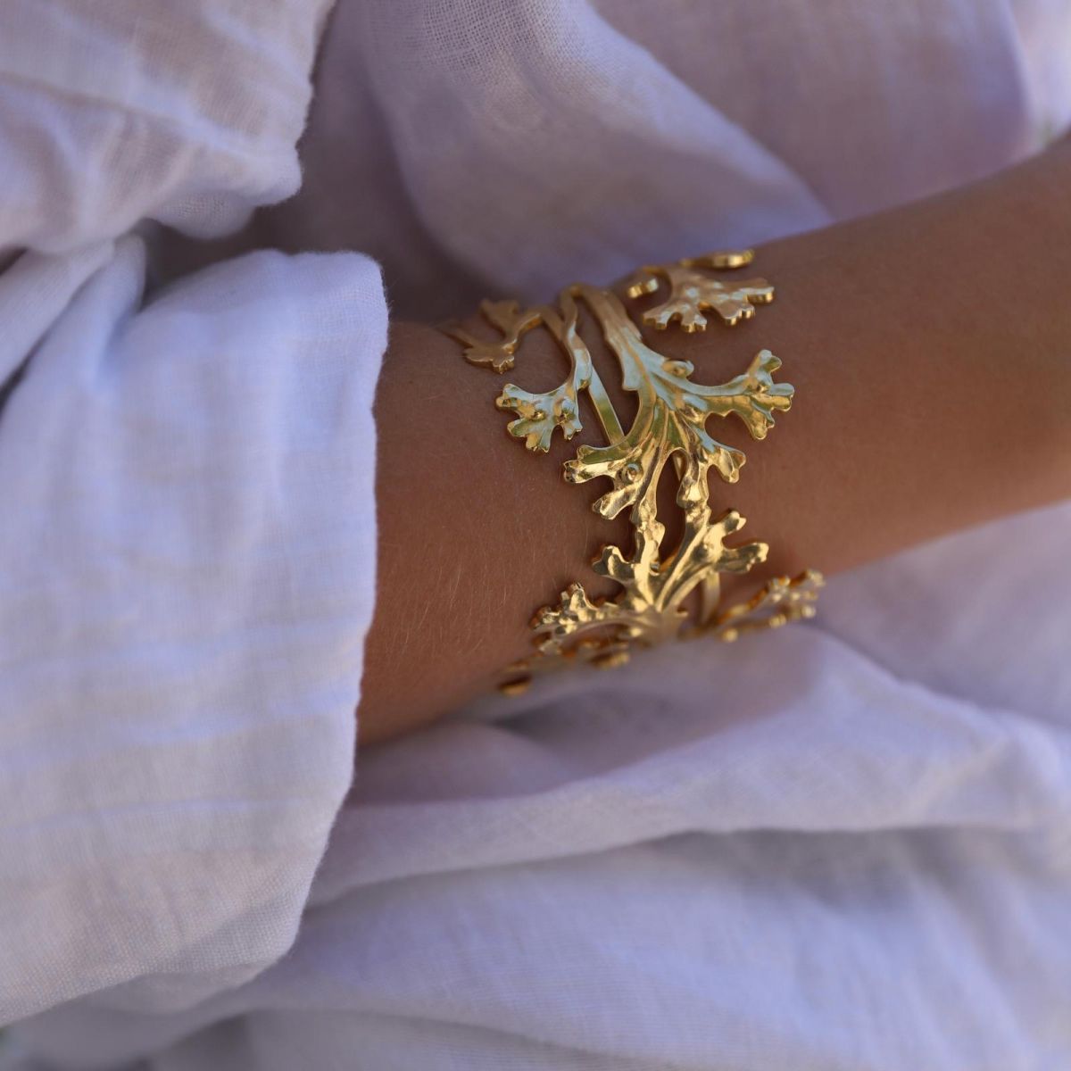 The majority of our jewelry uses stampings: metal patterns, struck on a sheet of brass using a die and a punch, allowing us to obtain refined pieces representing various subjects (leaves, flowers, animals, filigree, Art Deco, Art Nouveau, etc.). Full of history, these stampings are made in France on tools, some of which are hand-engraved and date from the middle of the 19th century. With an eco-responsible design, our jewelry is all gilded with 24k fine gold. All models are assembled by hand in our workshop in Nice and often decorated with fine stones and natural pearls.