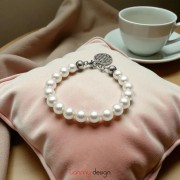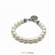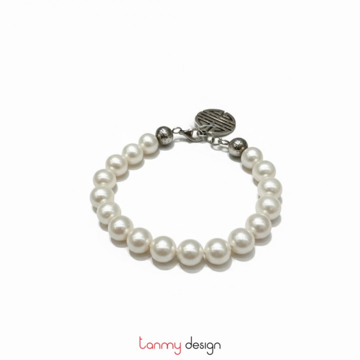 Pearl bracelet with 2 silver balls and silver longevity charm