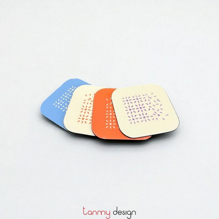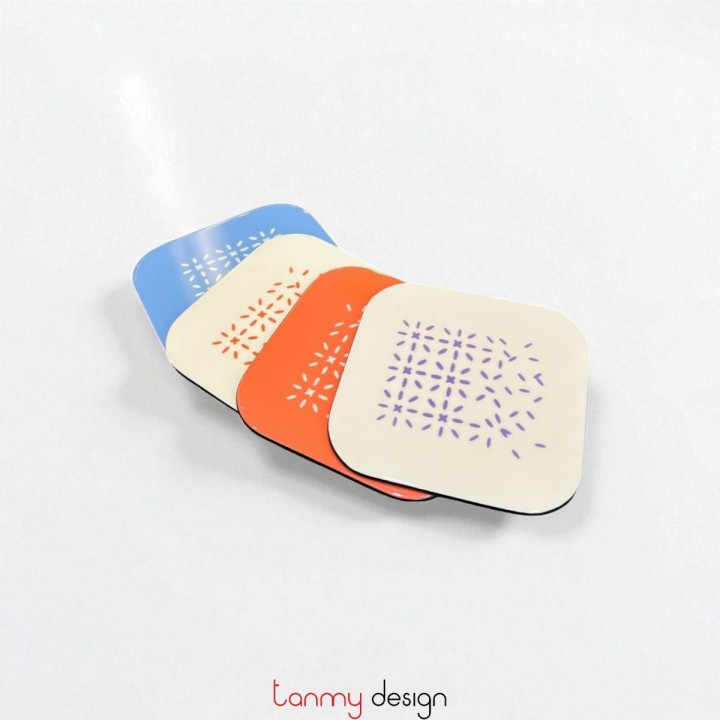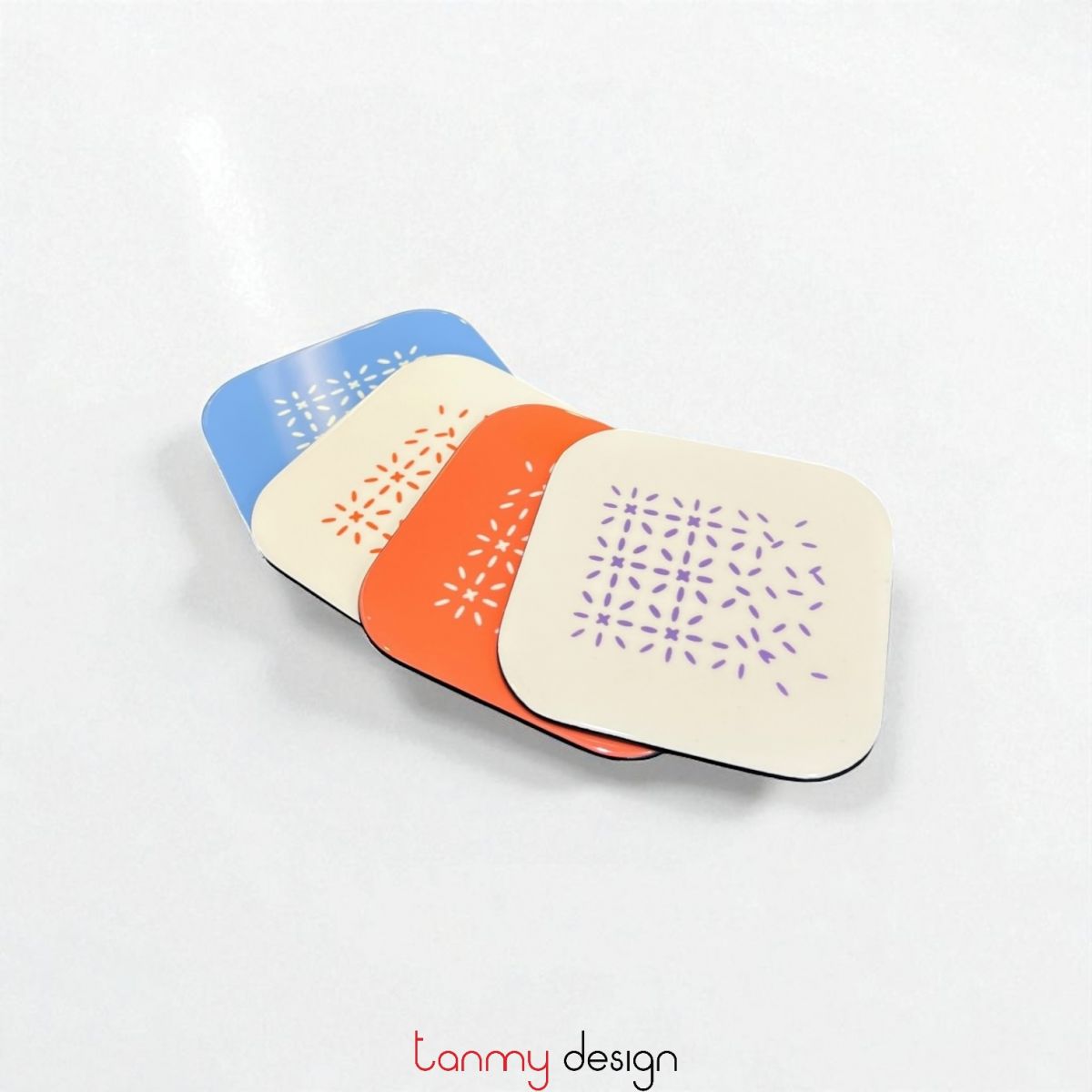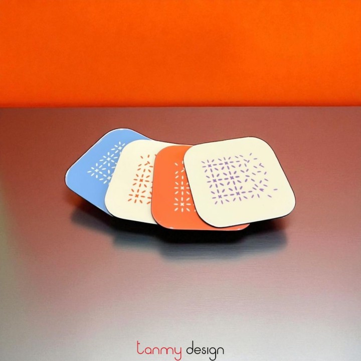 Set of 4 square lacquer coasters with pattern 9x9xH0.25 cm