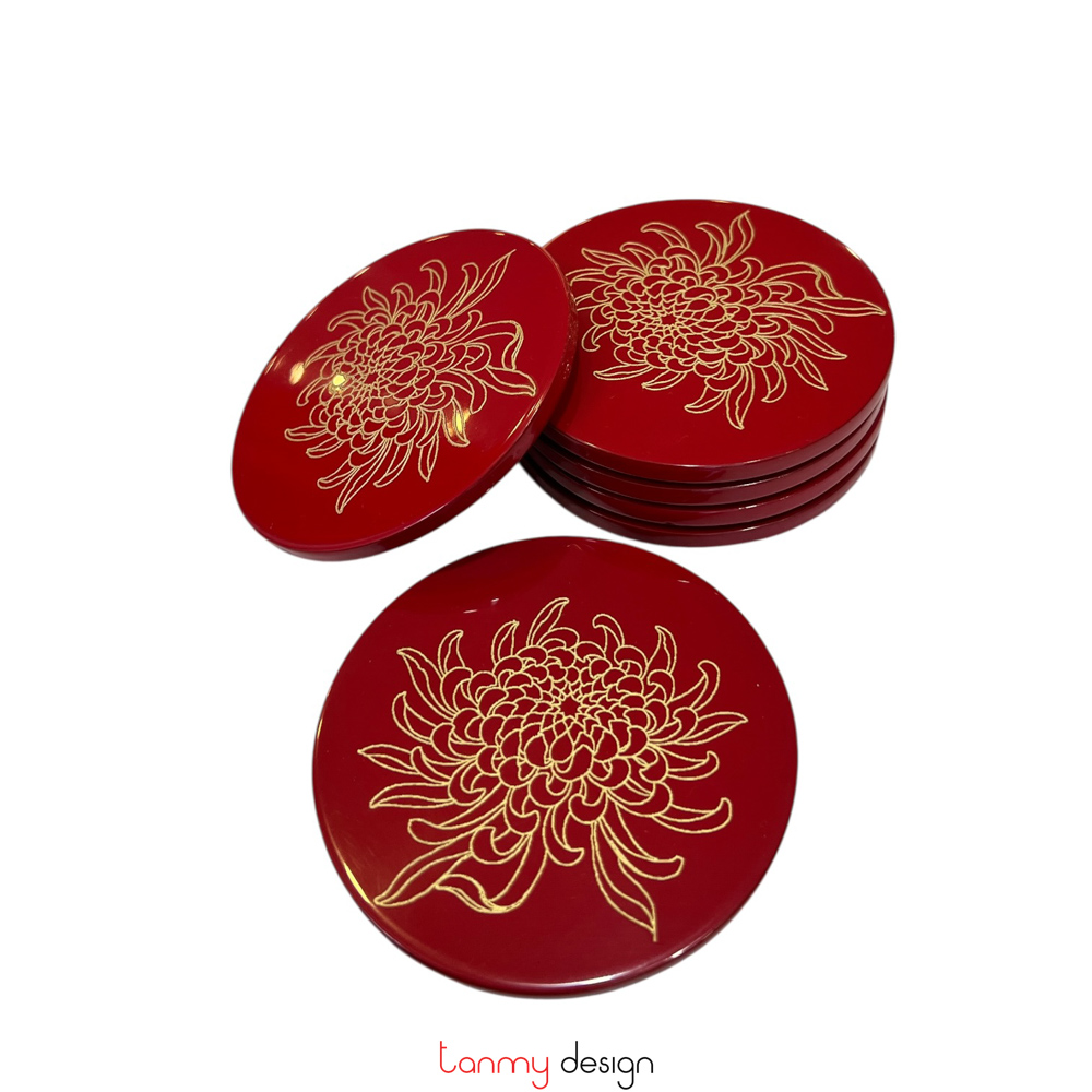 Set of 6 lacquer coasters with flower ( different designs )