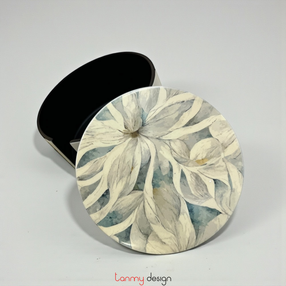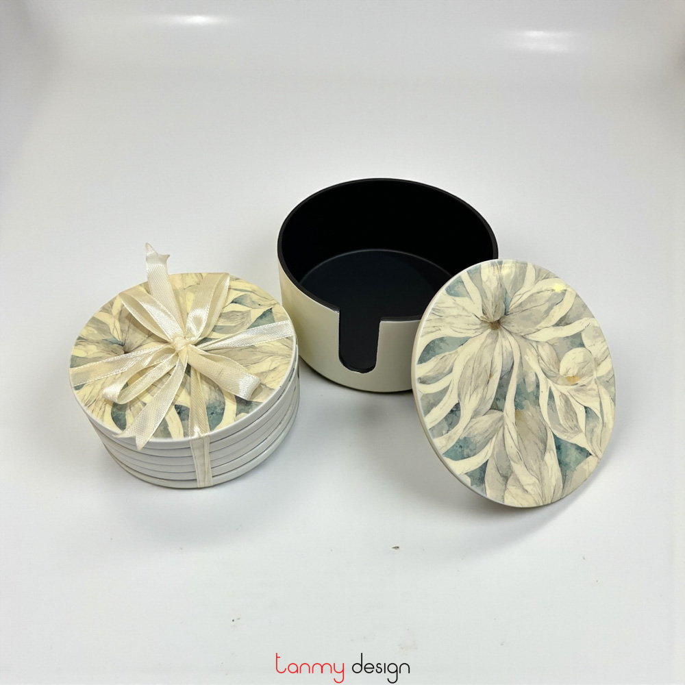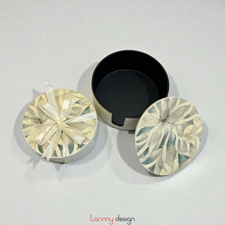Set of 6 round hand-painted coasters included with box ( different designs )