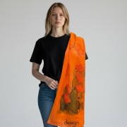 Dark orange ramie scarf hand-painted with Old Quarter 70*190cm