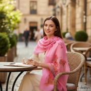 Lotus pink ramie scarf hand-painted with Old Quarter 70*190cm