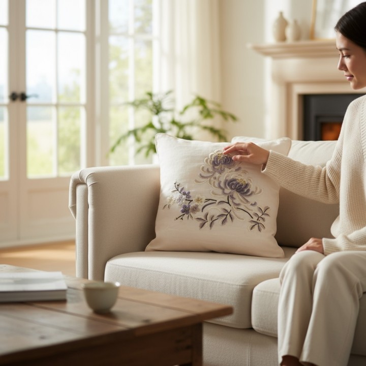 Cushion cover - chrysanthemum embroidery