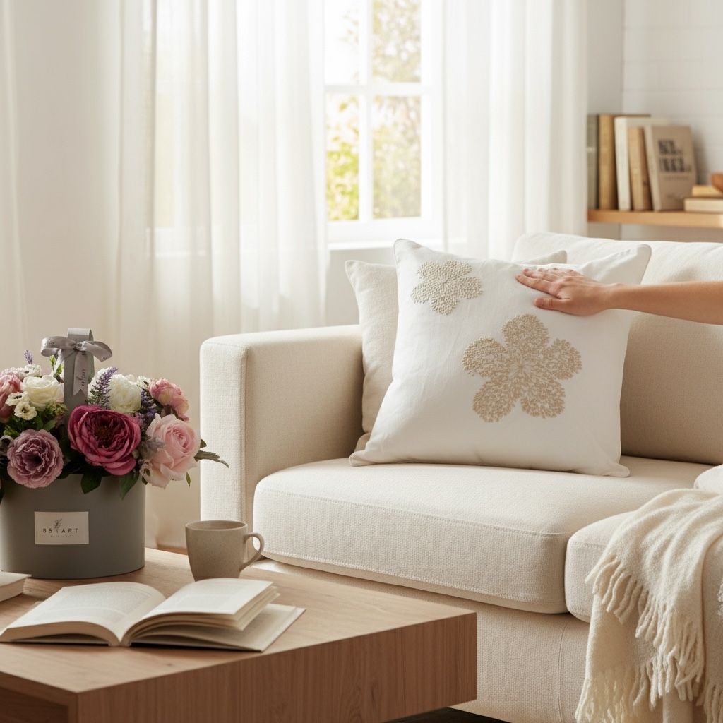 Hand-embroidered cushion covers of Tan My brand made of linen fabric, the natural material bring comfort and luxury for your room