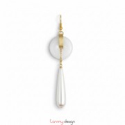 Coin-shaped stone earrings with white teardrop-shaped resin beads