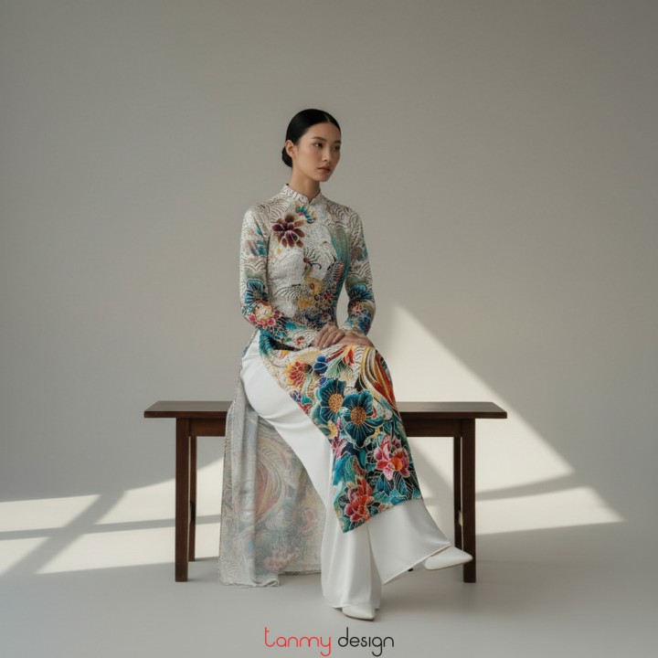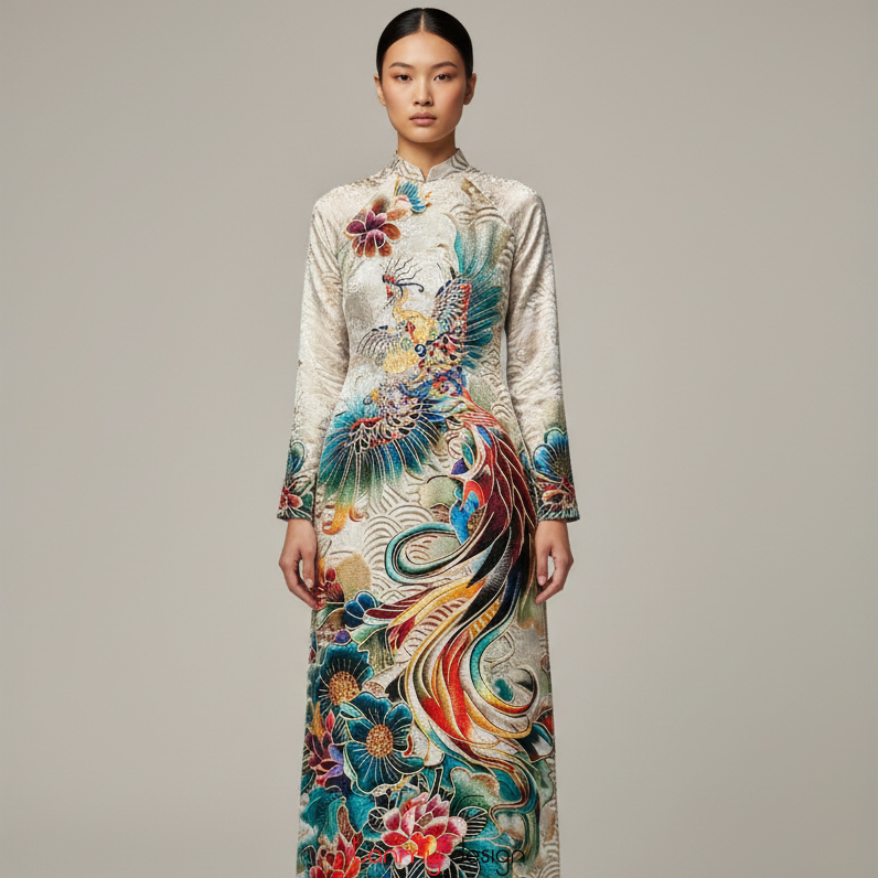 Brocade traditional Vietnamese long dress with stone ( different designs )