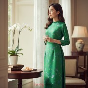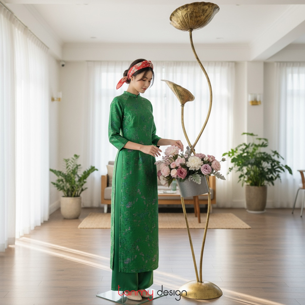 Green brocade long dress