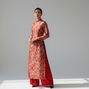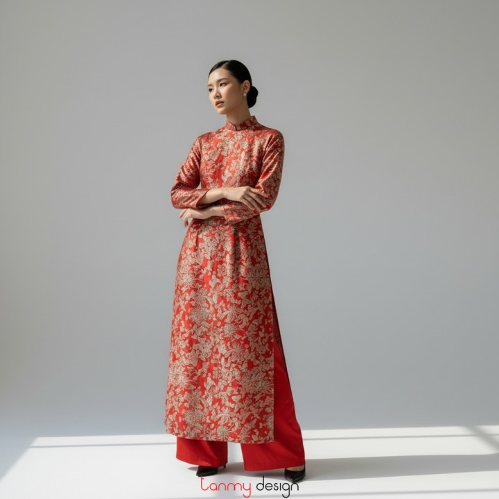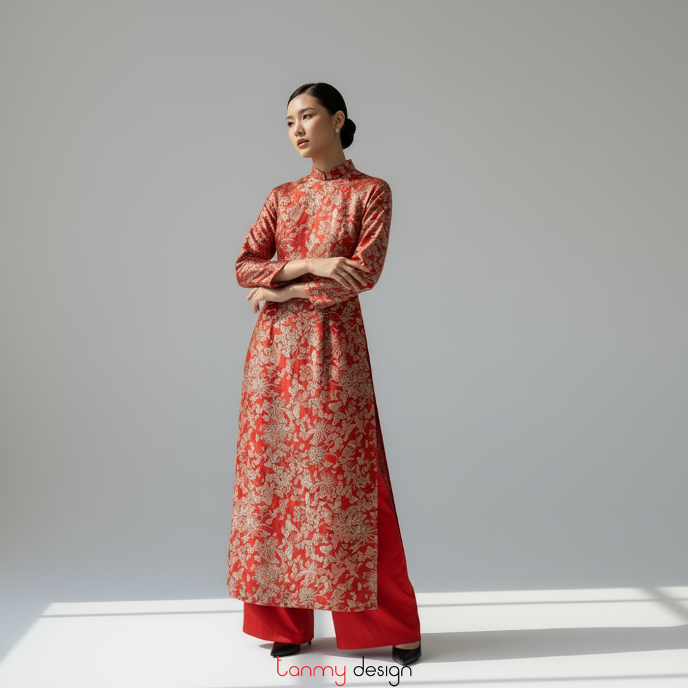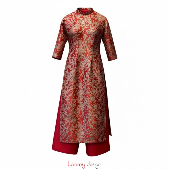 Red brocade long dress
