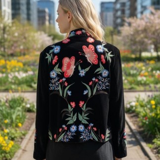 Velvet coat hand-embroidered with phoenix and flower pattern