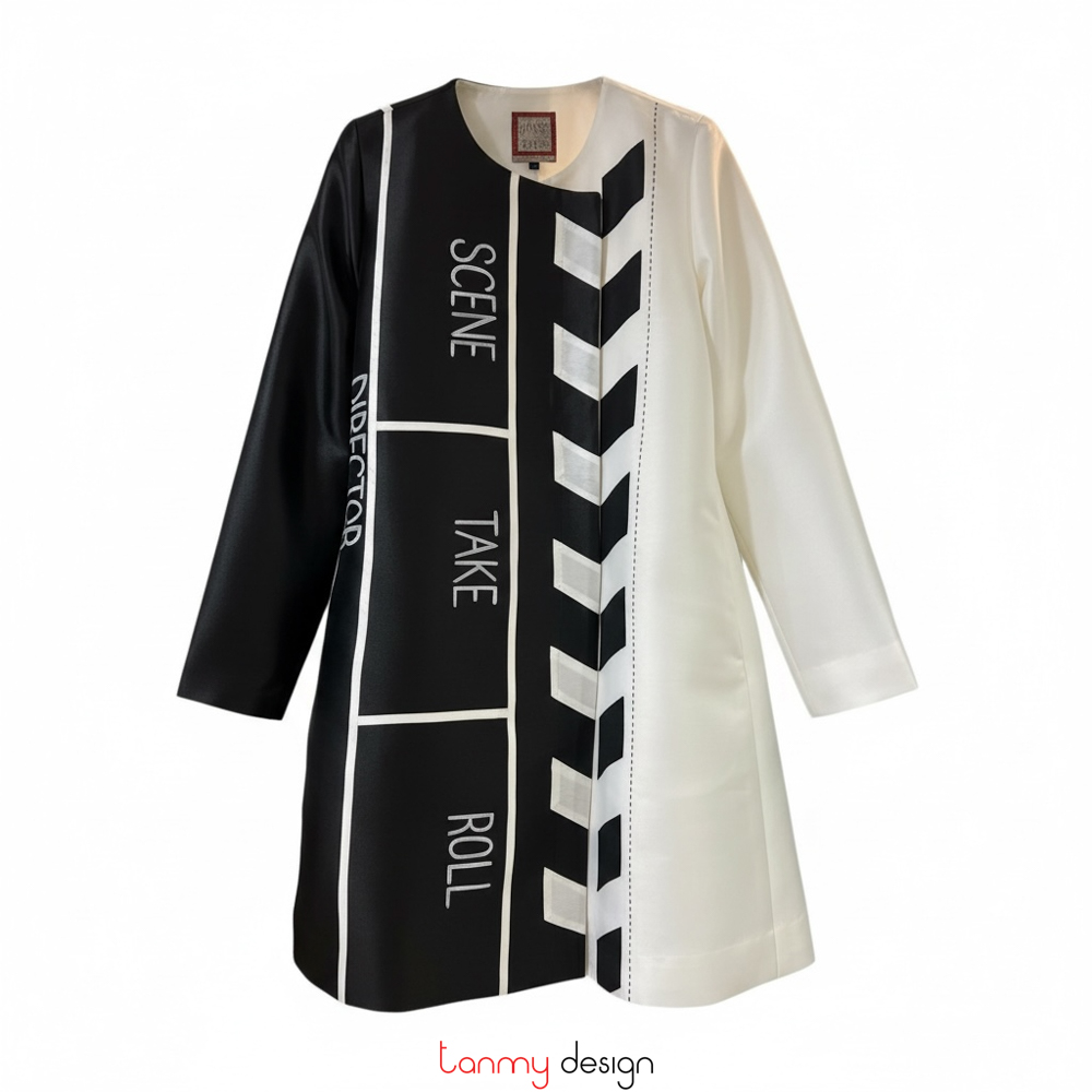 Black and white taffeta coat - CI12