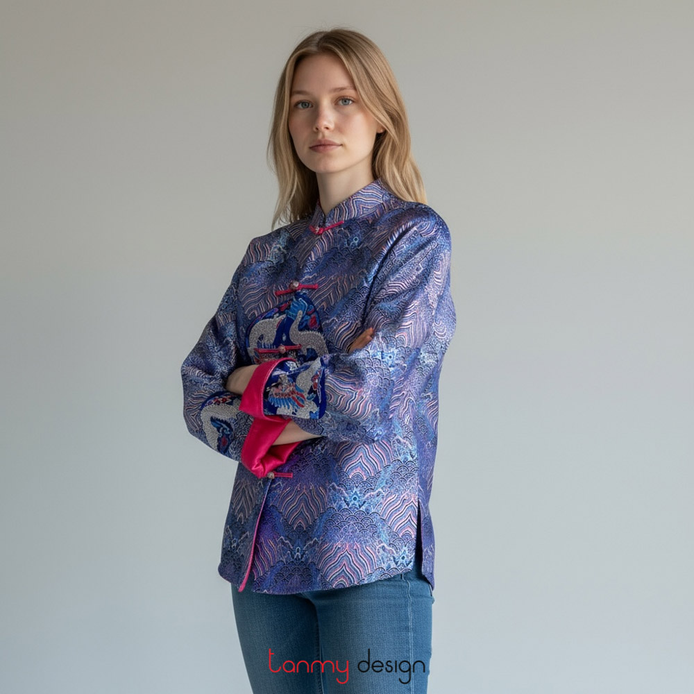 Blue dragon brocade coat