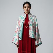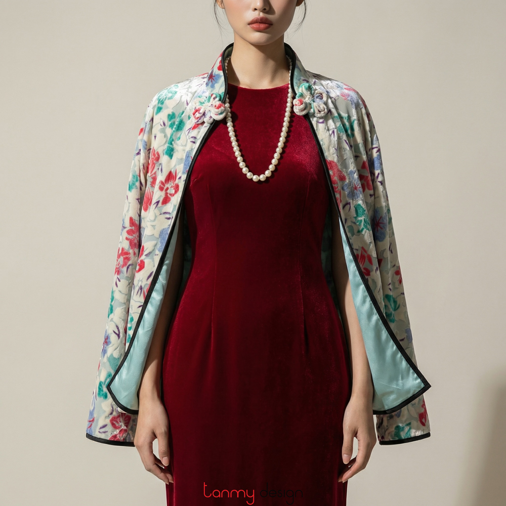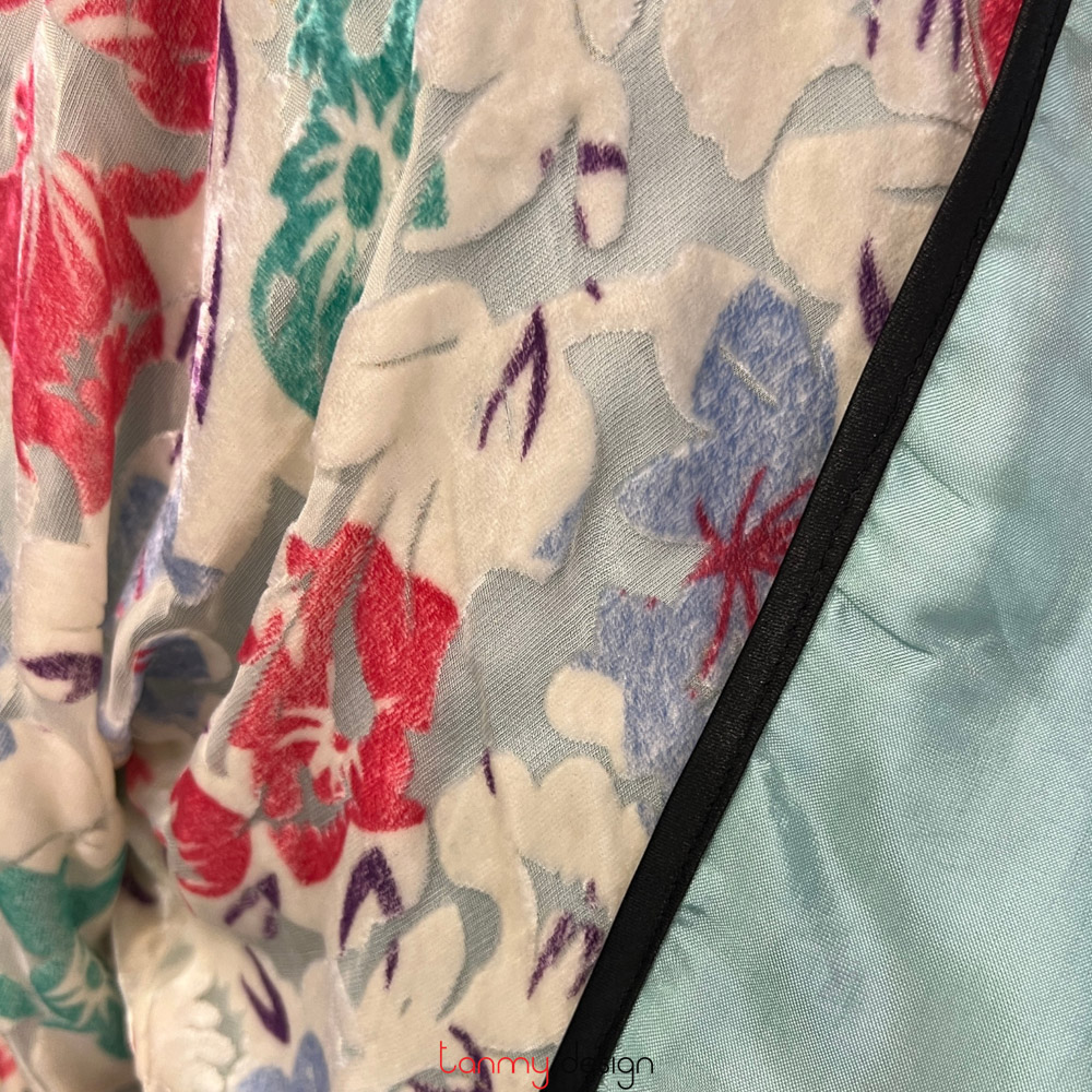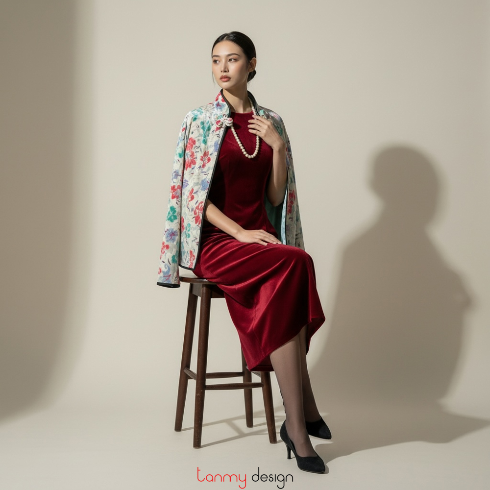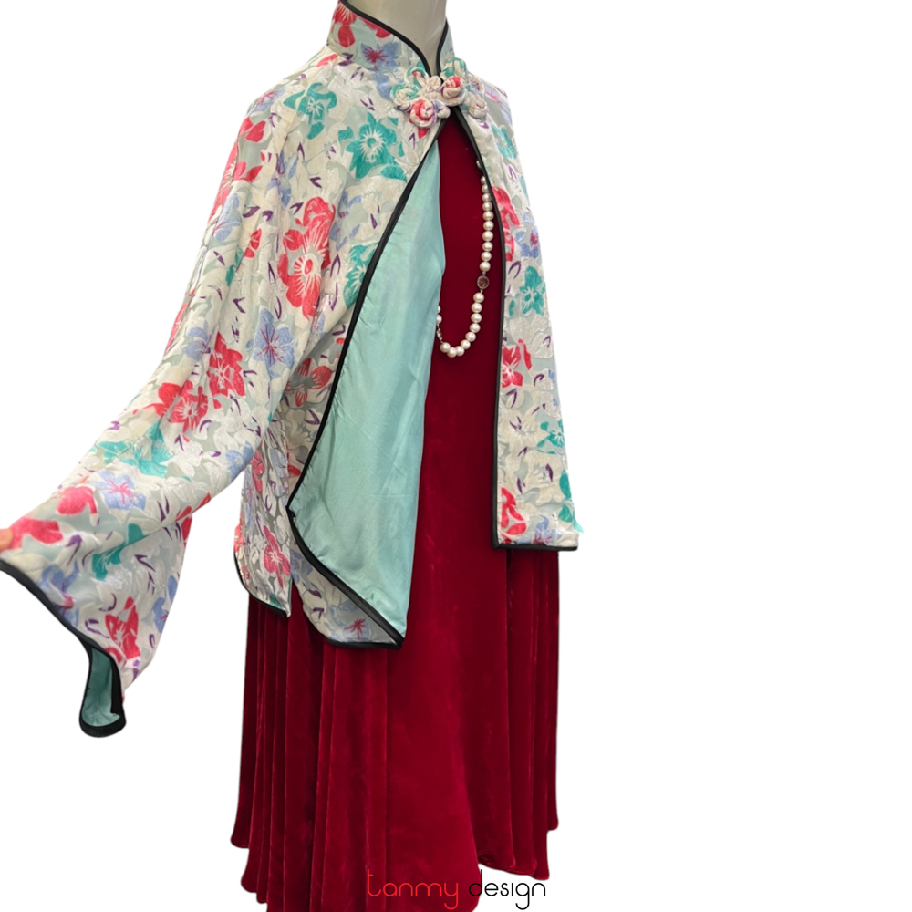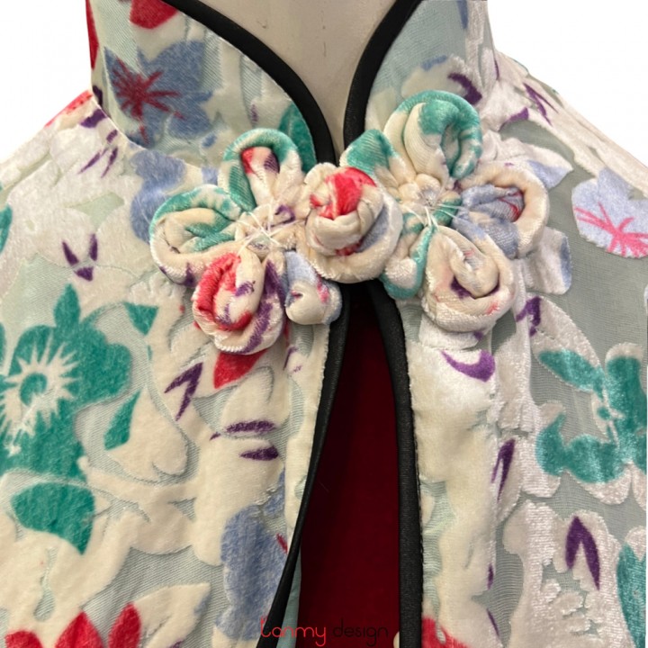 Colorful flower velvet coat with one button