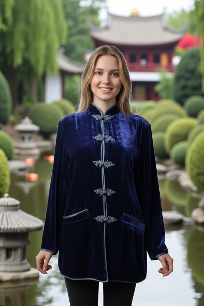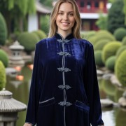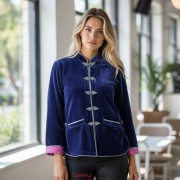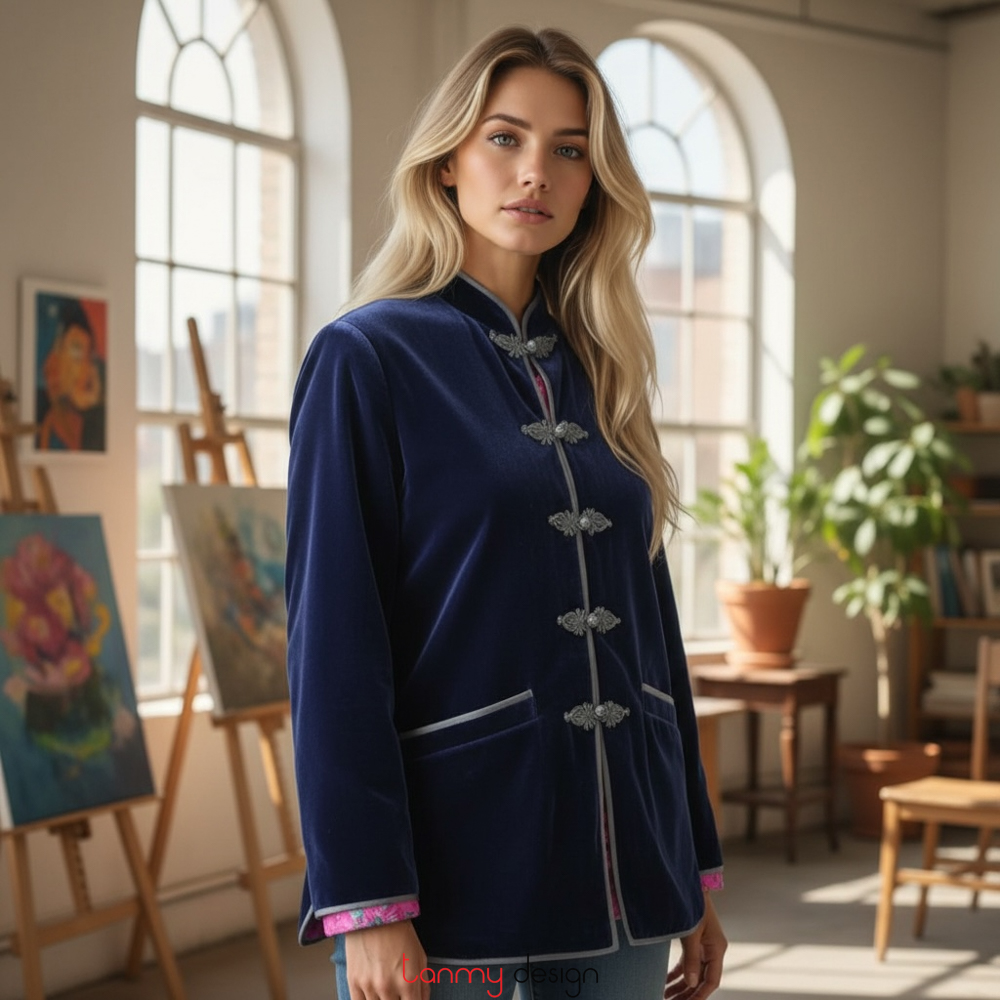 Dark blue velvet coat with plaited buttons