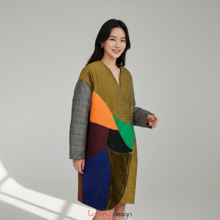 Patchwork-colored mulberry silk quilted jacket