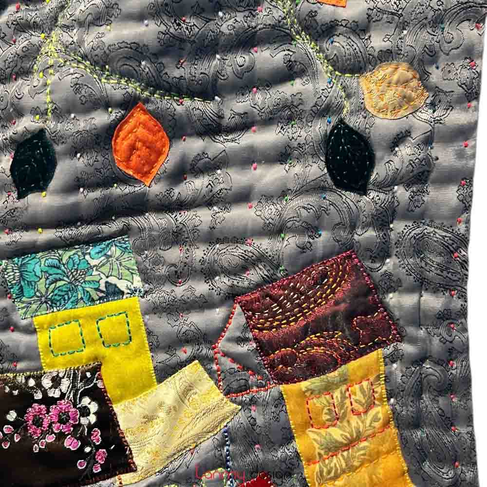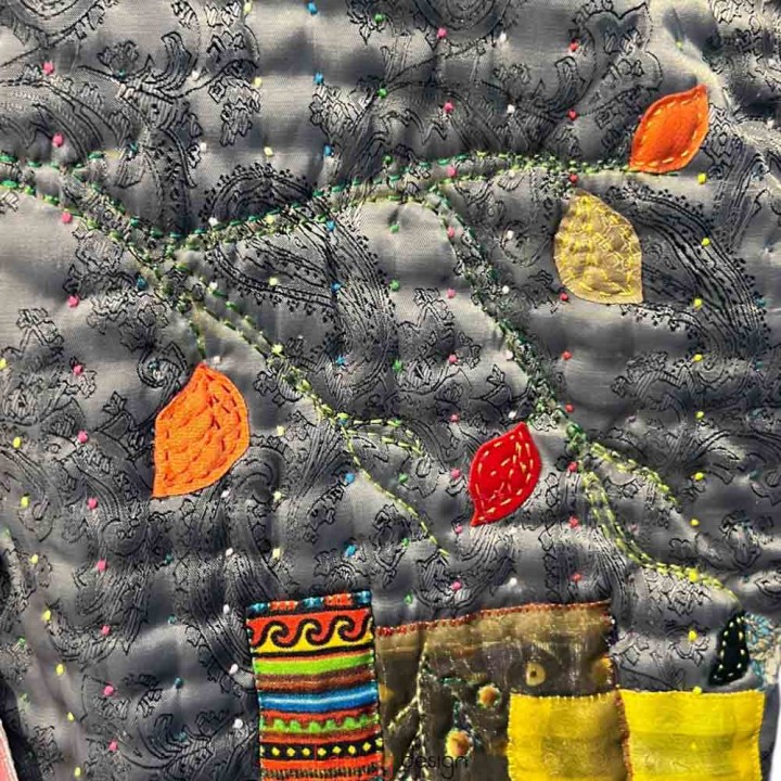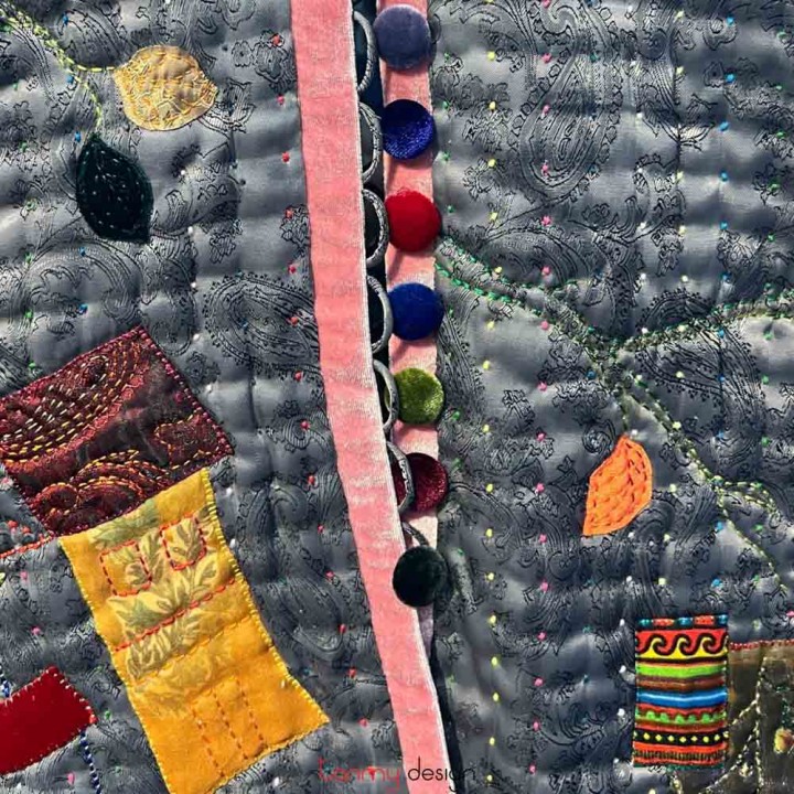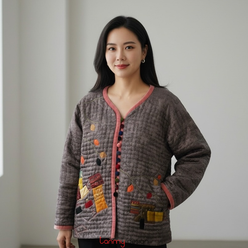 Two-layer silk quilted coat with Old Quarter embroidery
