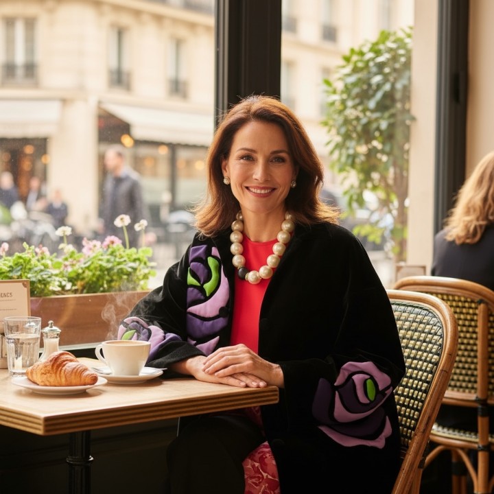 Velvet Jacket with Peter Pan Collar, Dropped Shoulders, and 3D Embroidered Roses