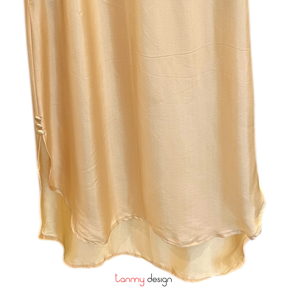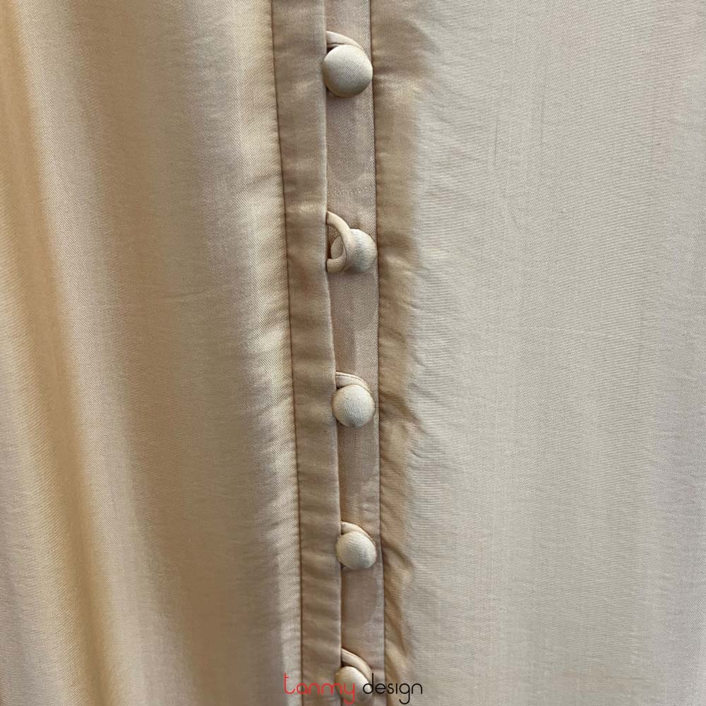 Beige silk mandarin-collar dress