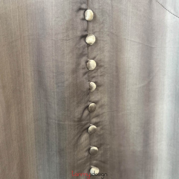 Gray silk dress with the velvet-trimmed collar