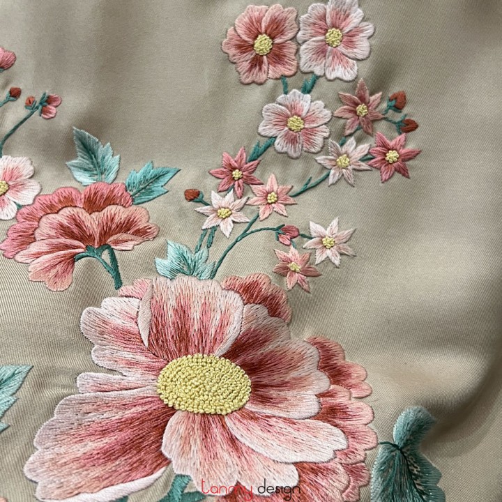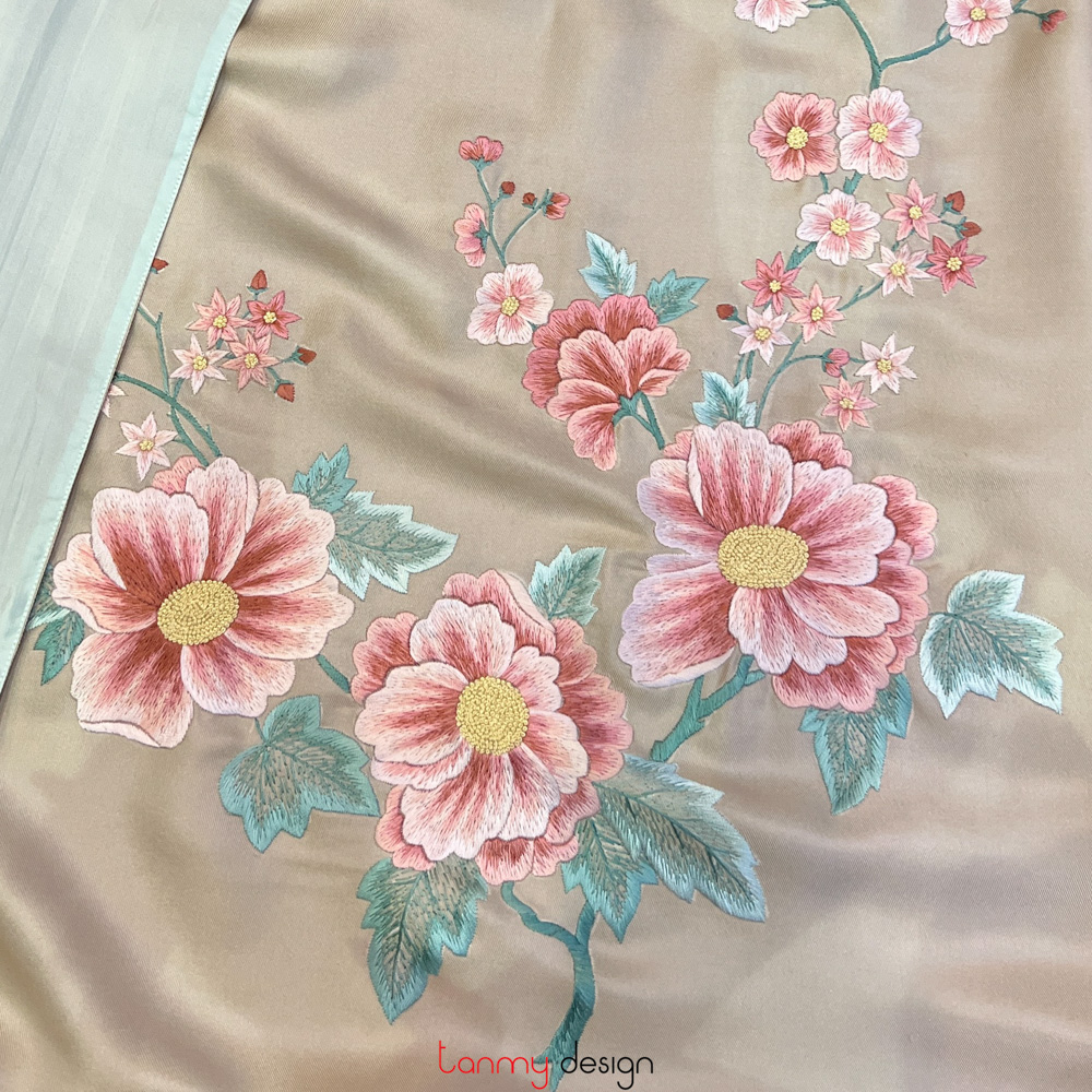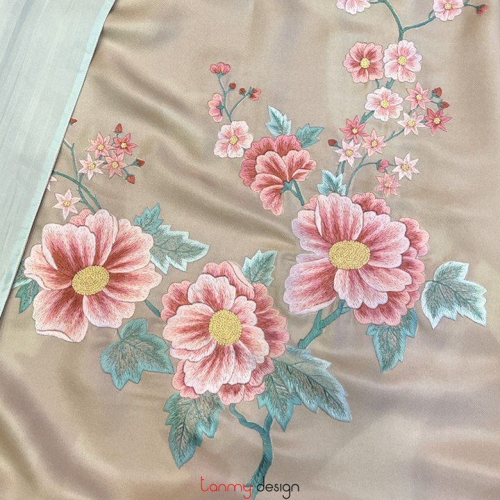 Beige silk scarf hand-embroidered with flowers 55*200 cm- Different models
