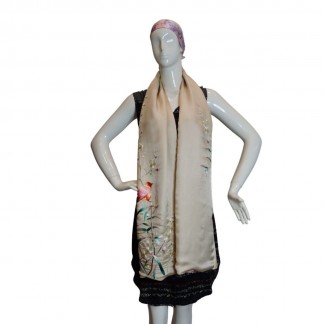 Silk scarf hand-embroidered with lotus 25*200 cm